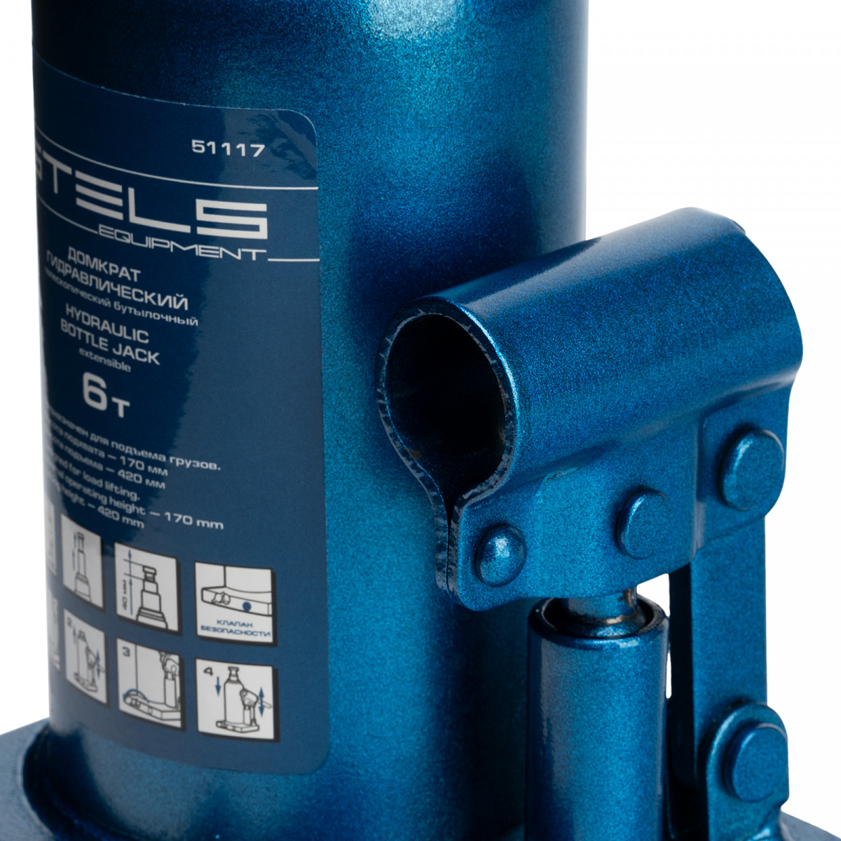 Домкрат Stels 51117 обеспечивает надежную защиту от поднятия грузов свыше 6000 кг благодаря клапану безопасности.