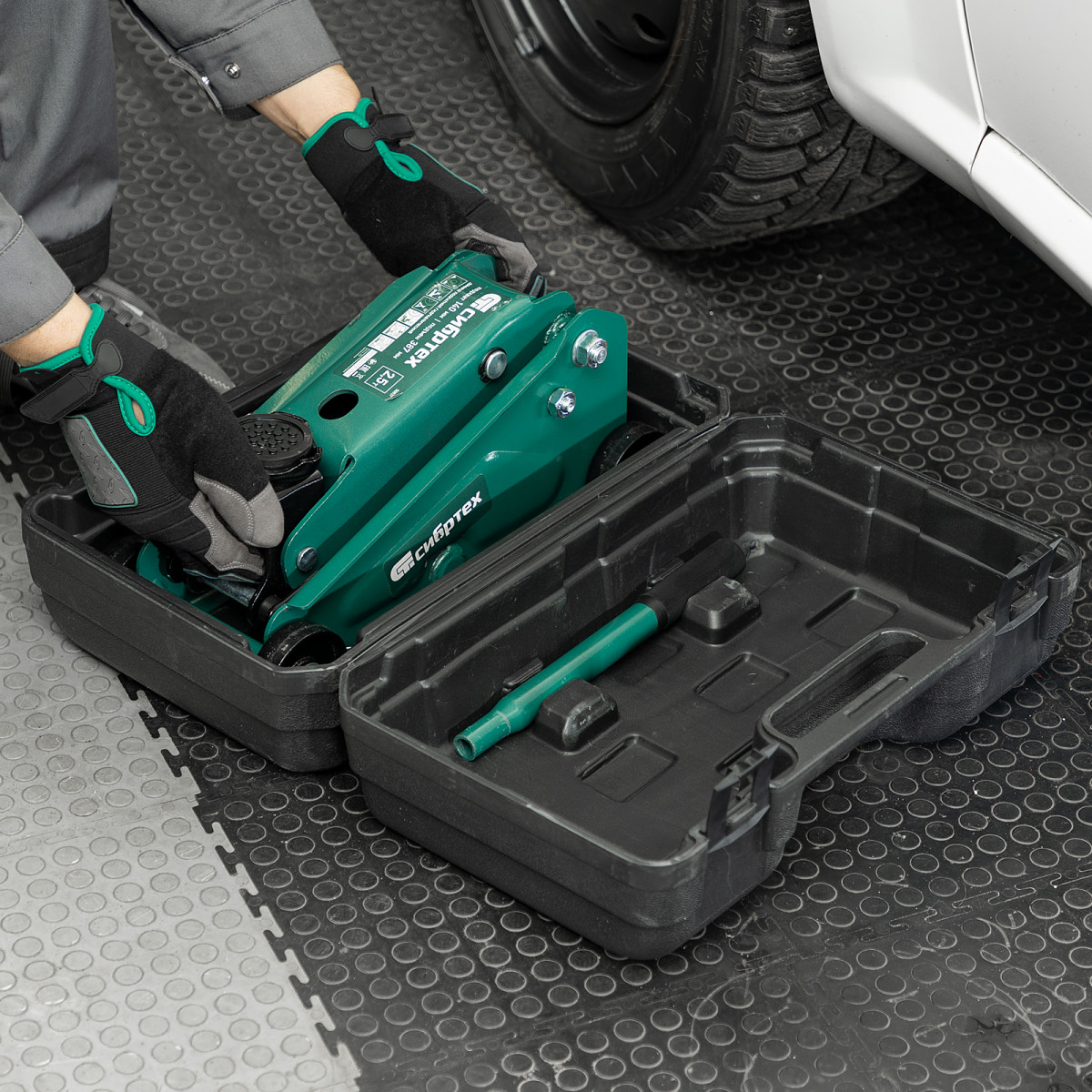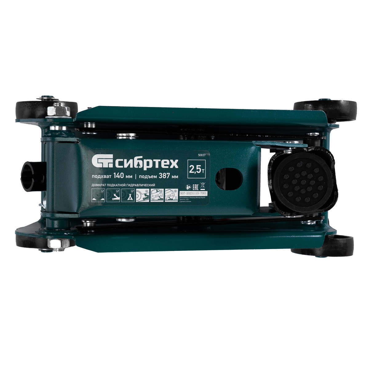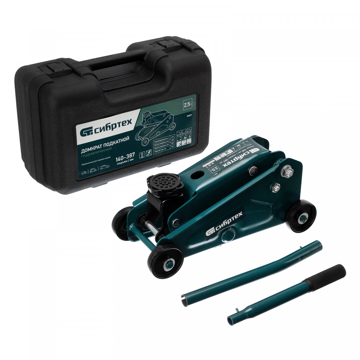 Гидравлический подкатной домкрат Сибртех 50837, поставляющийся в пластиковом кейсе, с высотой подхвата 140 мм, предназначен для подъема грузов массой до 2,5 т на высоту до 387 мм. Применяется для обслуживания автомобилей со стандартным клиренсом. Компактный домкрат подходит для самостоятельного использования автовладельцами.
