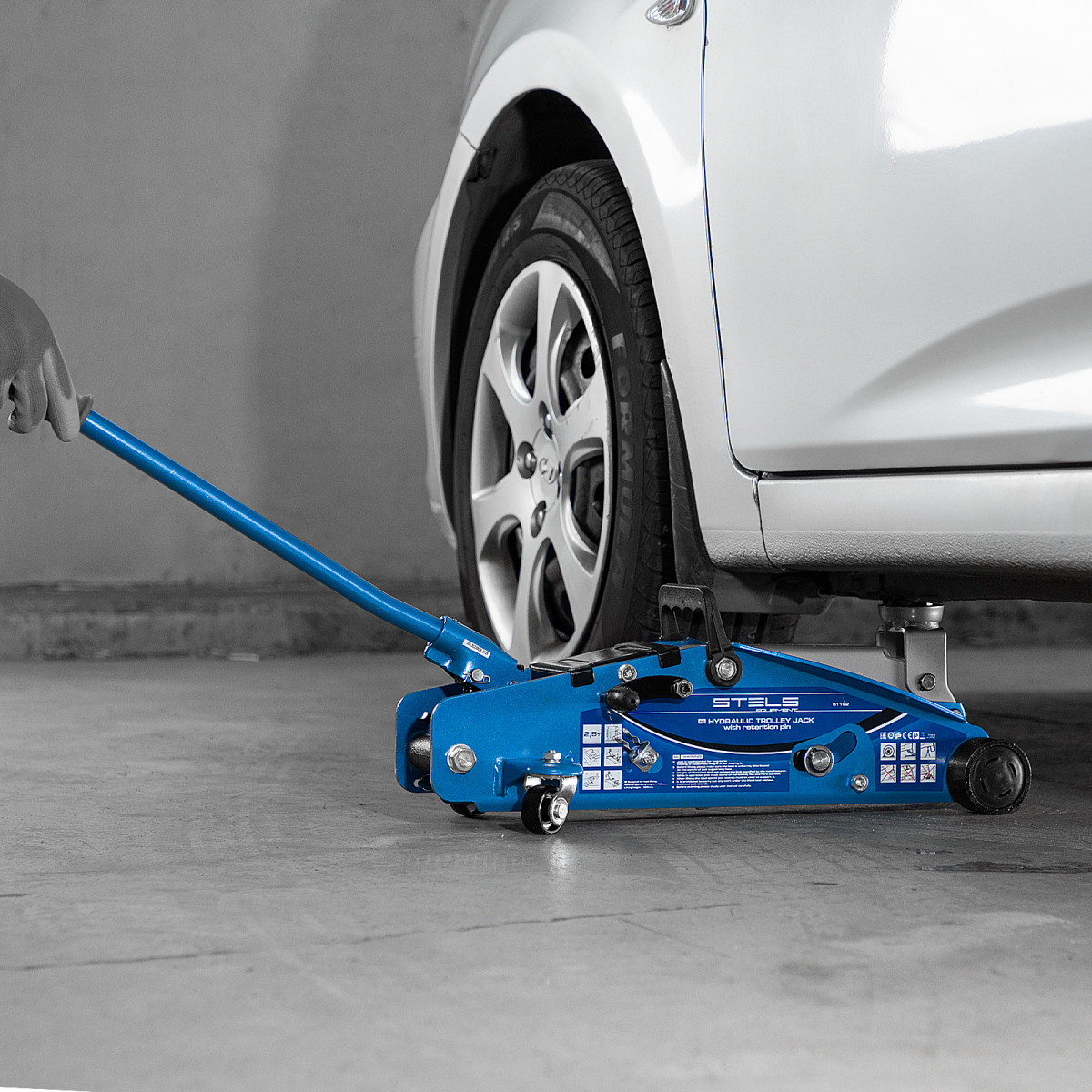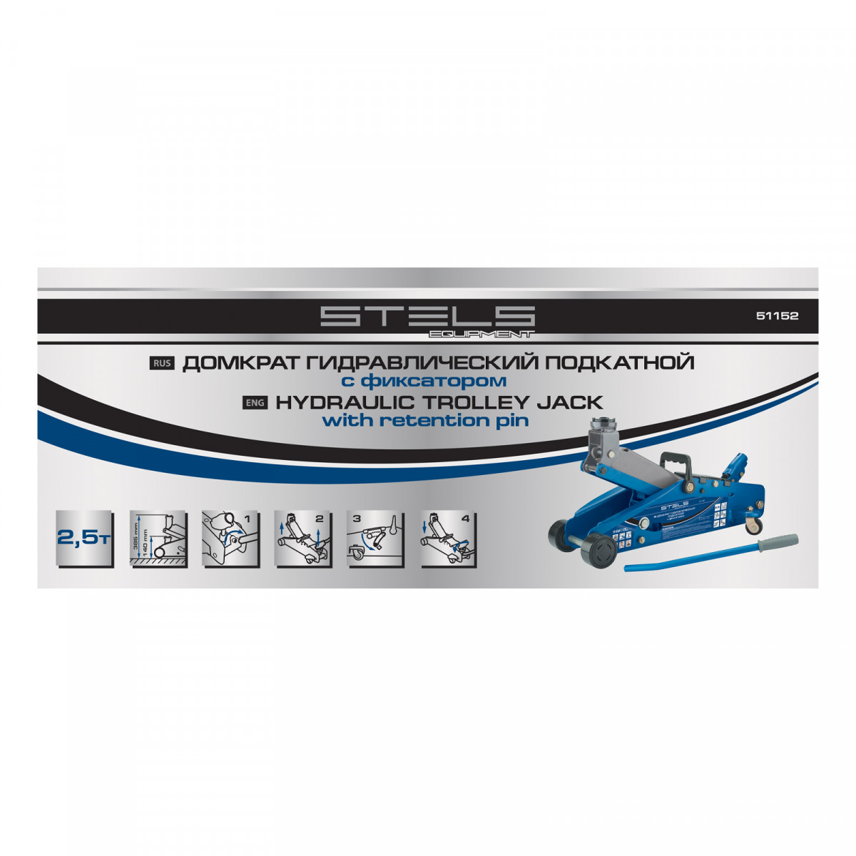 Подкатной гидравлический домкрат Stels Safety Pin 51152 с фиксатором, с высотой подхвата 140 мм, позволяет поднимать грузы весом до 2,5 т на высоту 385 мм. За счет низкого подхвата используется для обслуживания автомашин со стандартным дорожным просветом. Домкрат подходит для самостоятельного обслуживания авто.