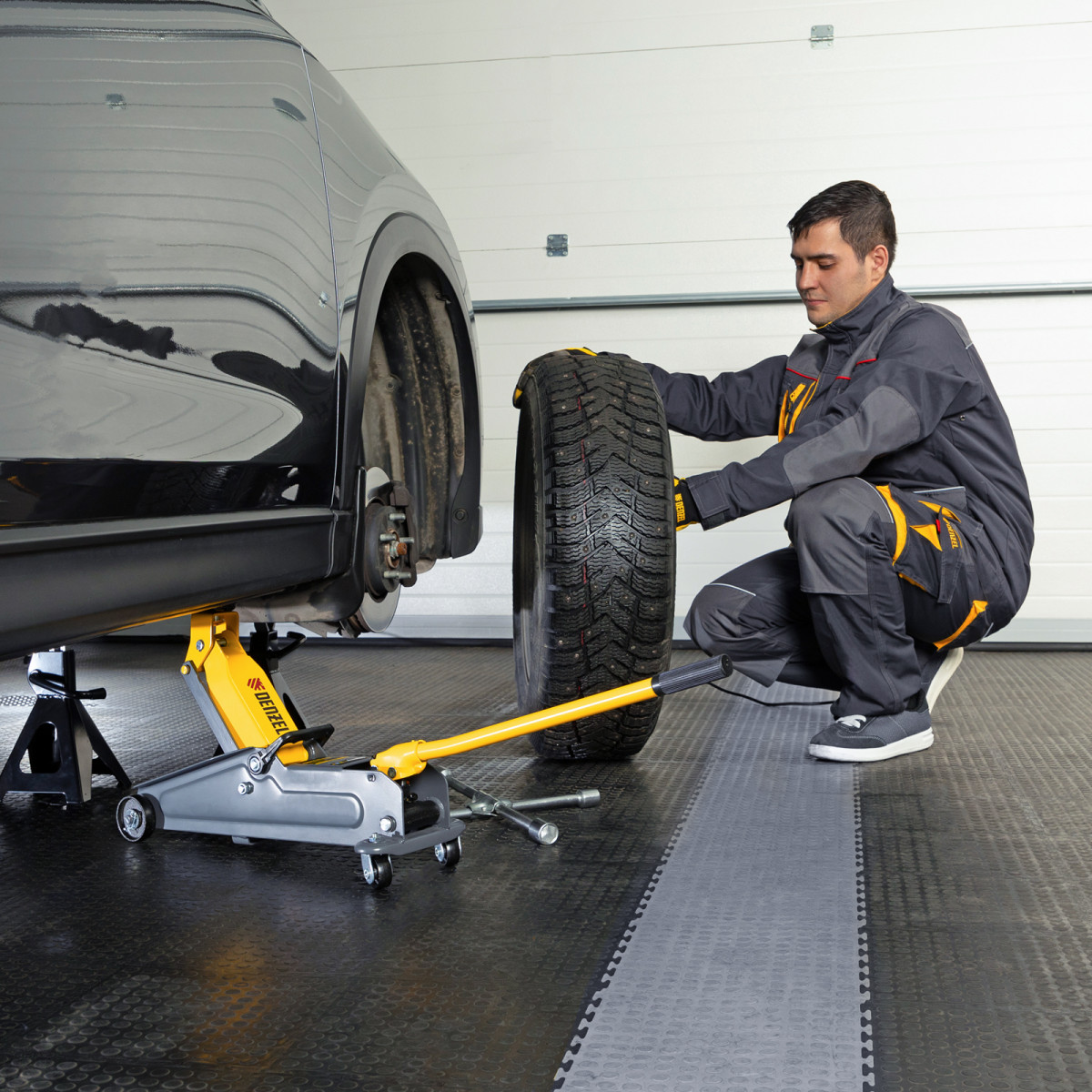 Гидравлический подкатной домкрат Denzel 51230 с высотой подхвата 135 мм предназначен для плавного подъема грузов массой до 2 т на высоту до 385 мм. Домкрат пригодится владельцам легковых автомобилей со стандартным клиренсом.