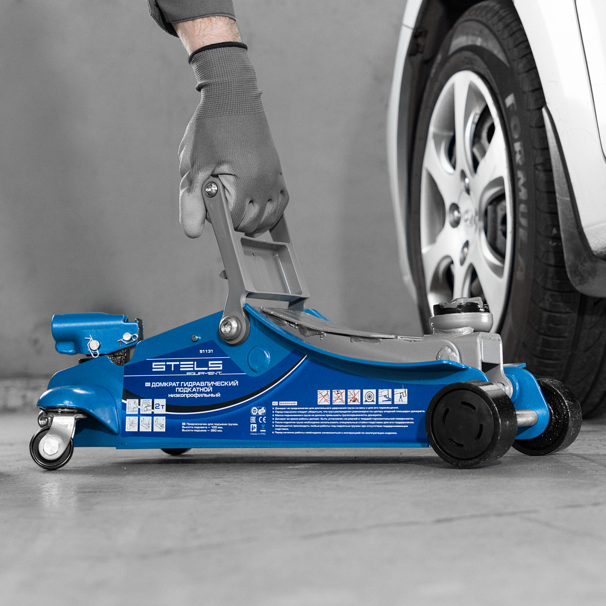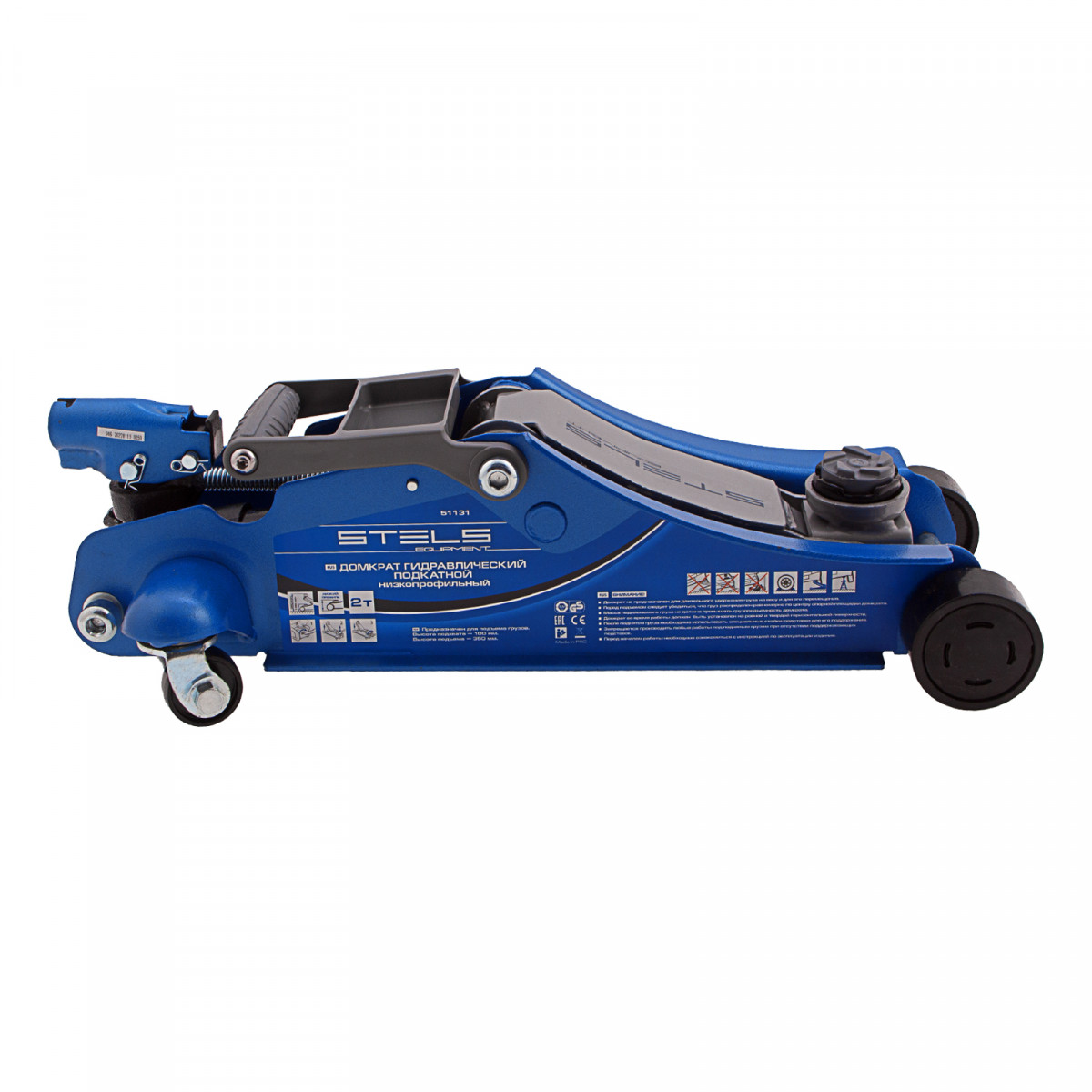 Домкрат гидравлический подкатной, поворотная рукоятка, 2 т, Low Profile, 100-350 мм Stels