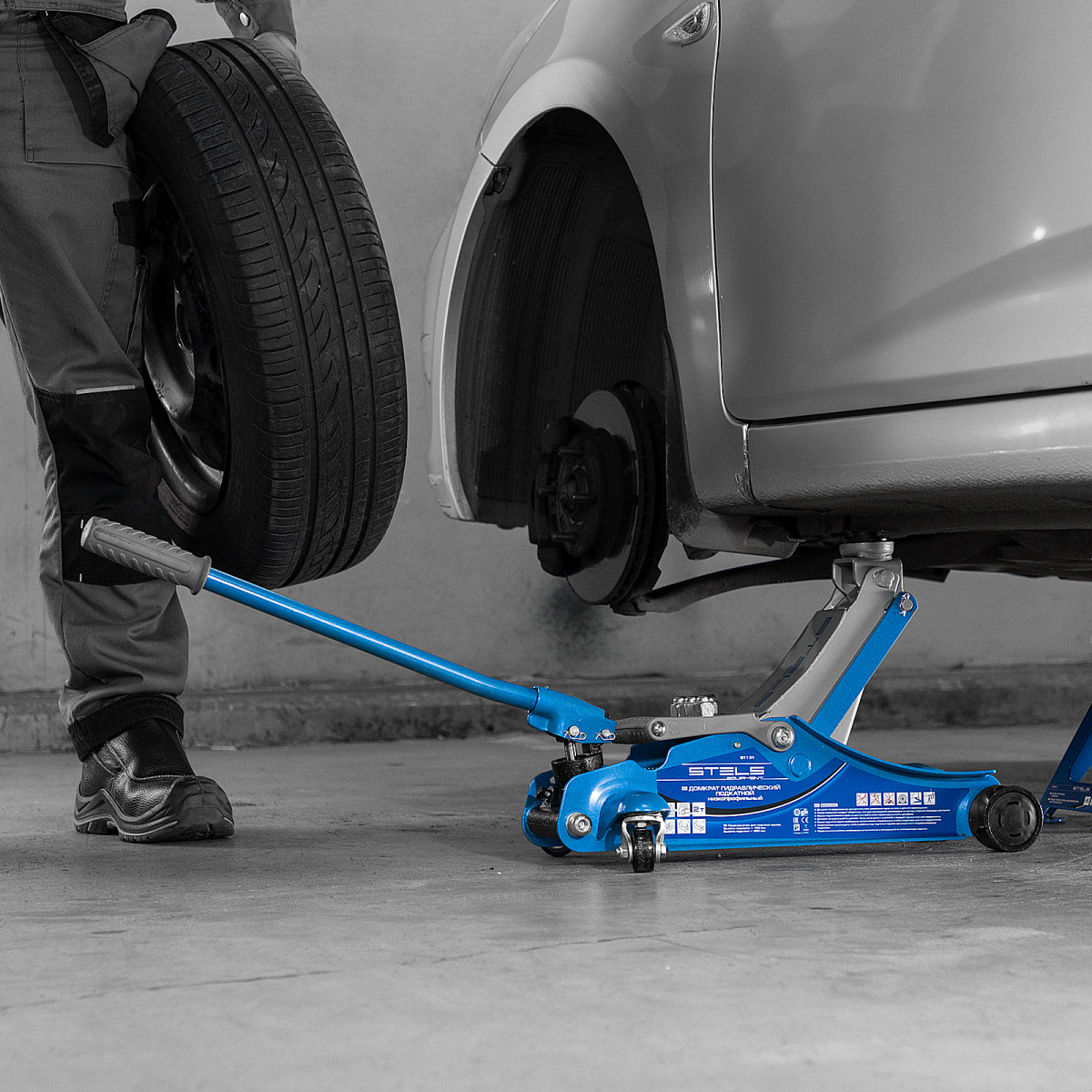 • Аккуратная работа — резиновая накладка на опору помогает лучше зафиксировать груз, защищает его и сам домкрат от повреждений.