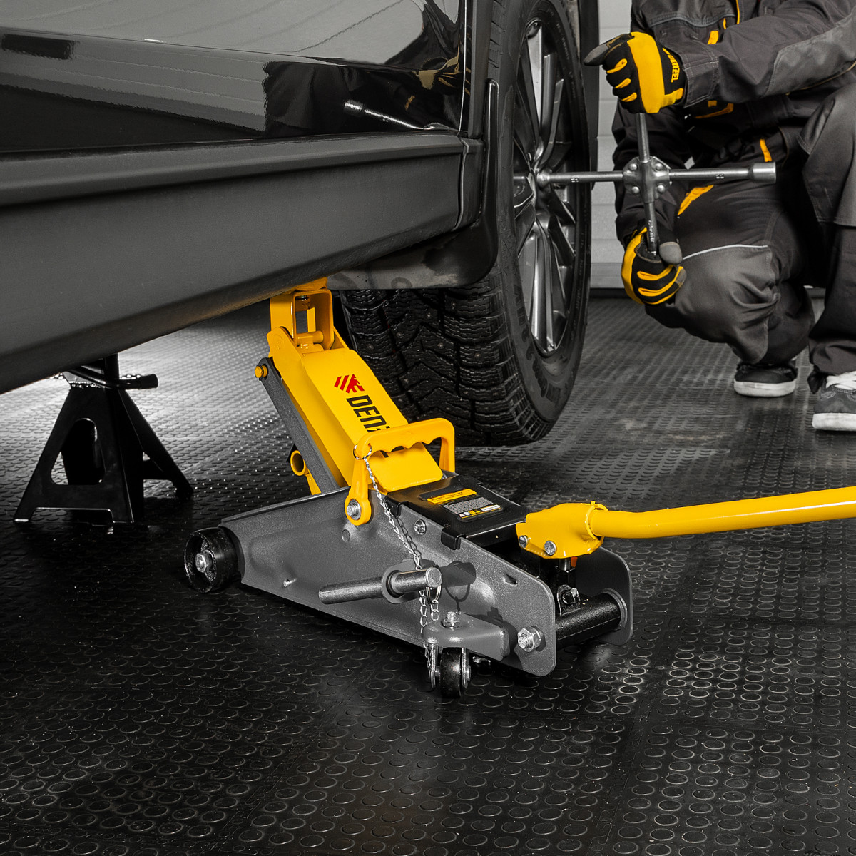• Эргономичность — домкрат имеет переставную рукоятку для комфортного перемещения и извлечения из-под автомобиля.