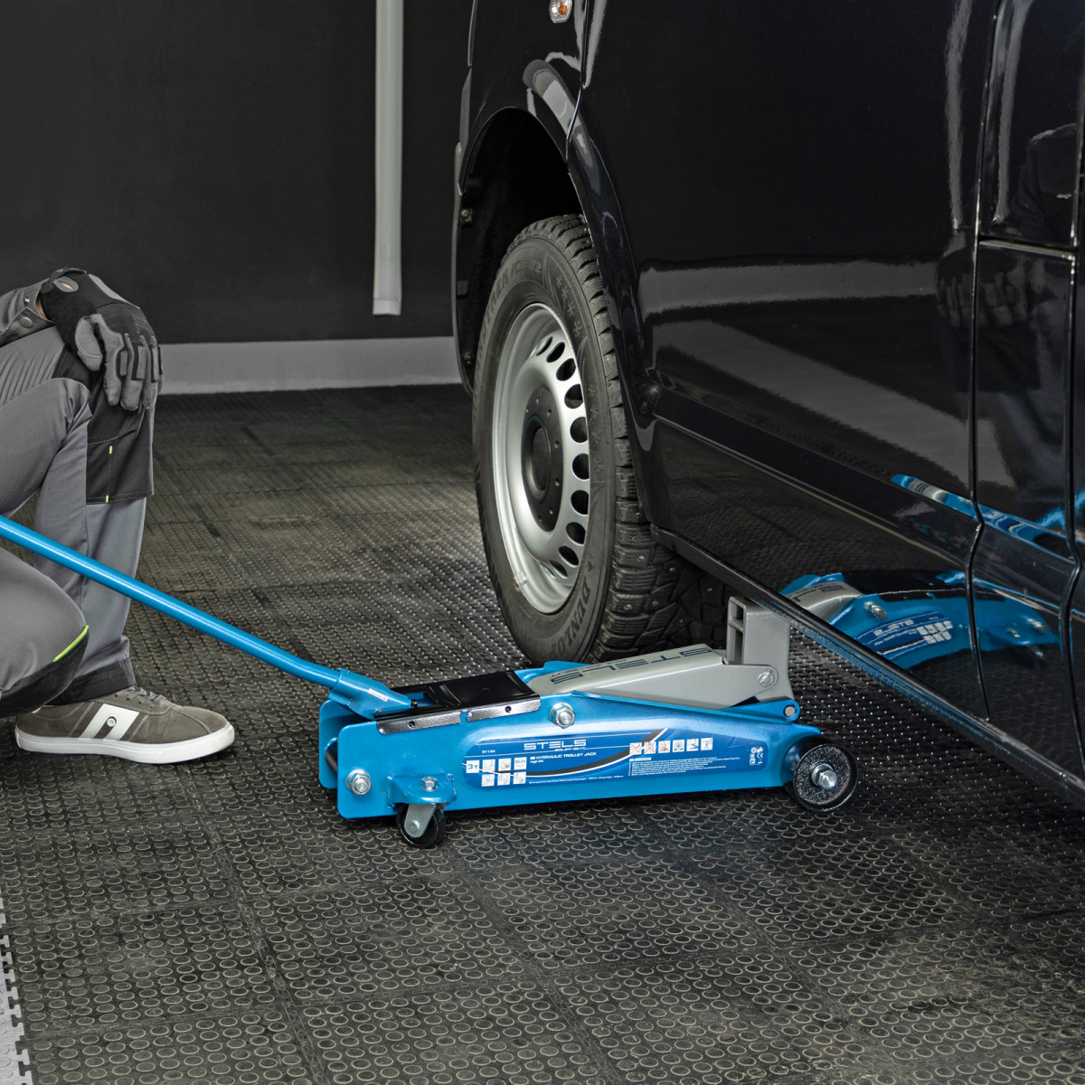 Подкатной гидравлический домкрат Stels 51134 с высоким подъемом 190 мм позволяет поднимать грузы весом до 3 т на высоту 535 мм и подходит для автомобилей класса SUV с увеличенным дорожным просветом. Может использоваться для самостоятельного обслуживания авто.
