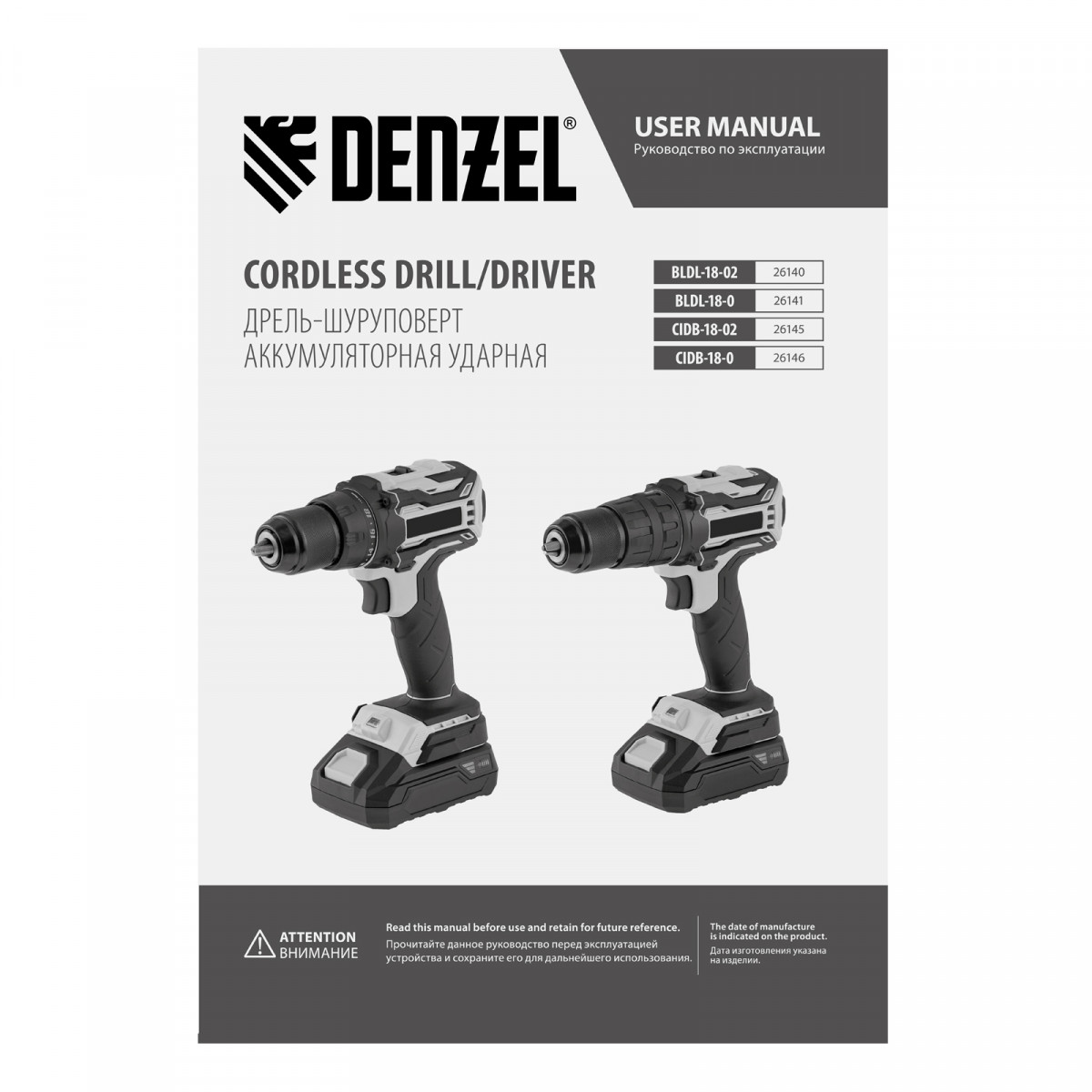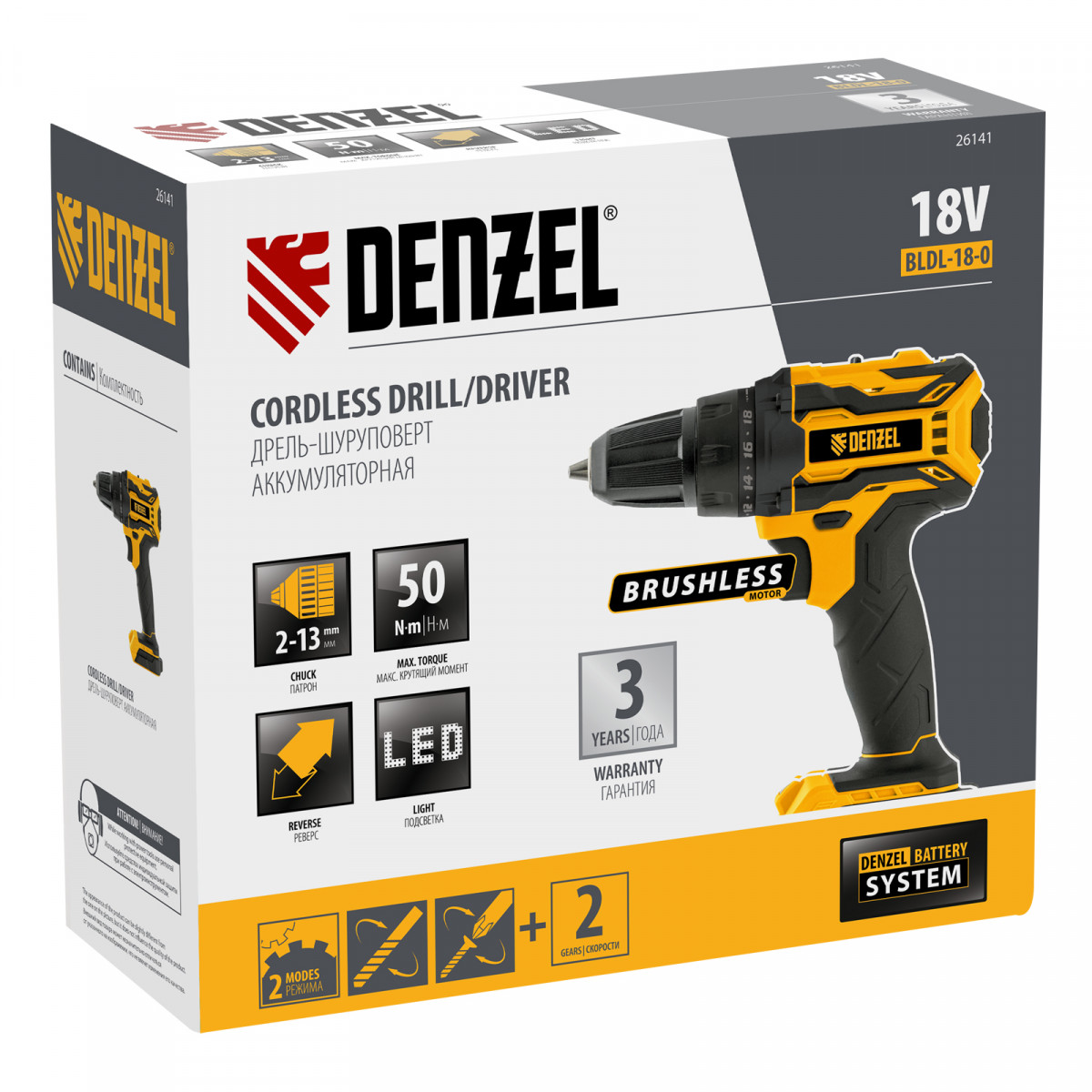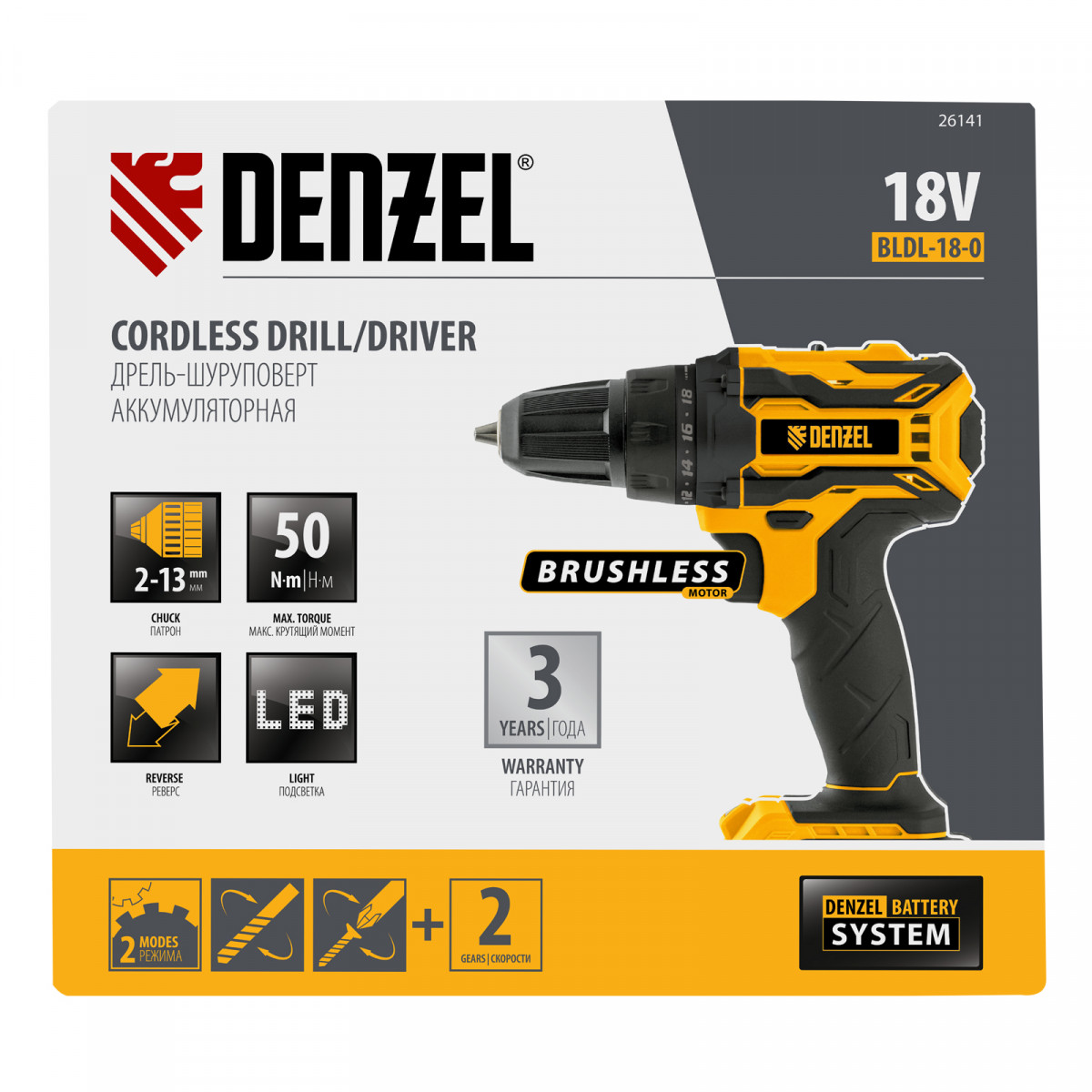 Дрель-шуруповерт аккумуляторная, бесщет. BLDL-18-0 Li-Ion, 18 В Denzel