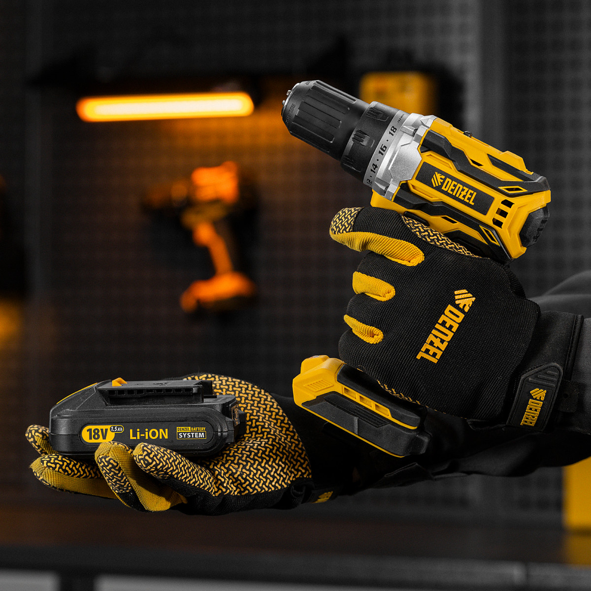 • Универсальность — инструмент совместим с любым Li-Ion аккумулятором и зарядным устройством единой платформы Denzel Battery System 18V.