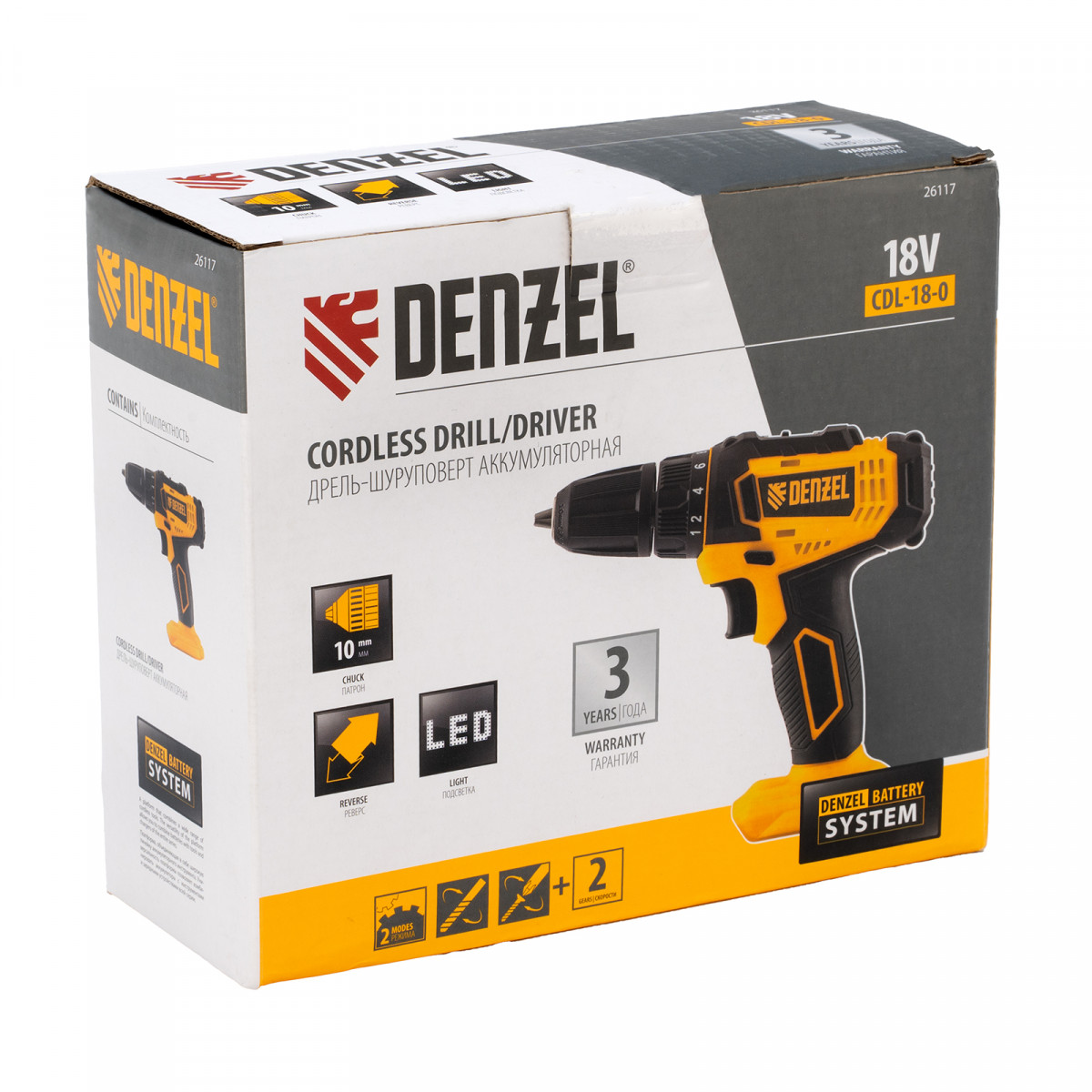Дрель-шуруповерт аккумуляторная CDL-18-0, Li-Ion, 18 В Denzel