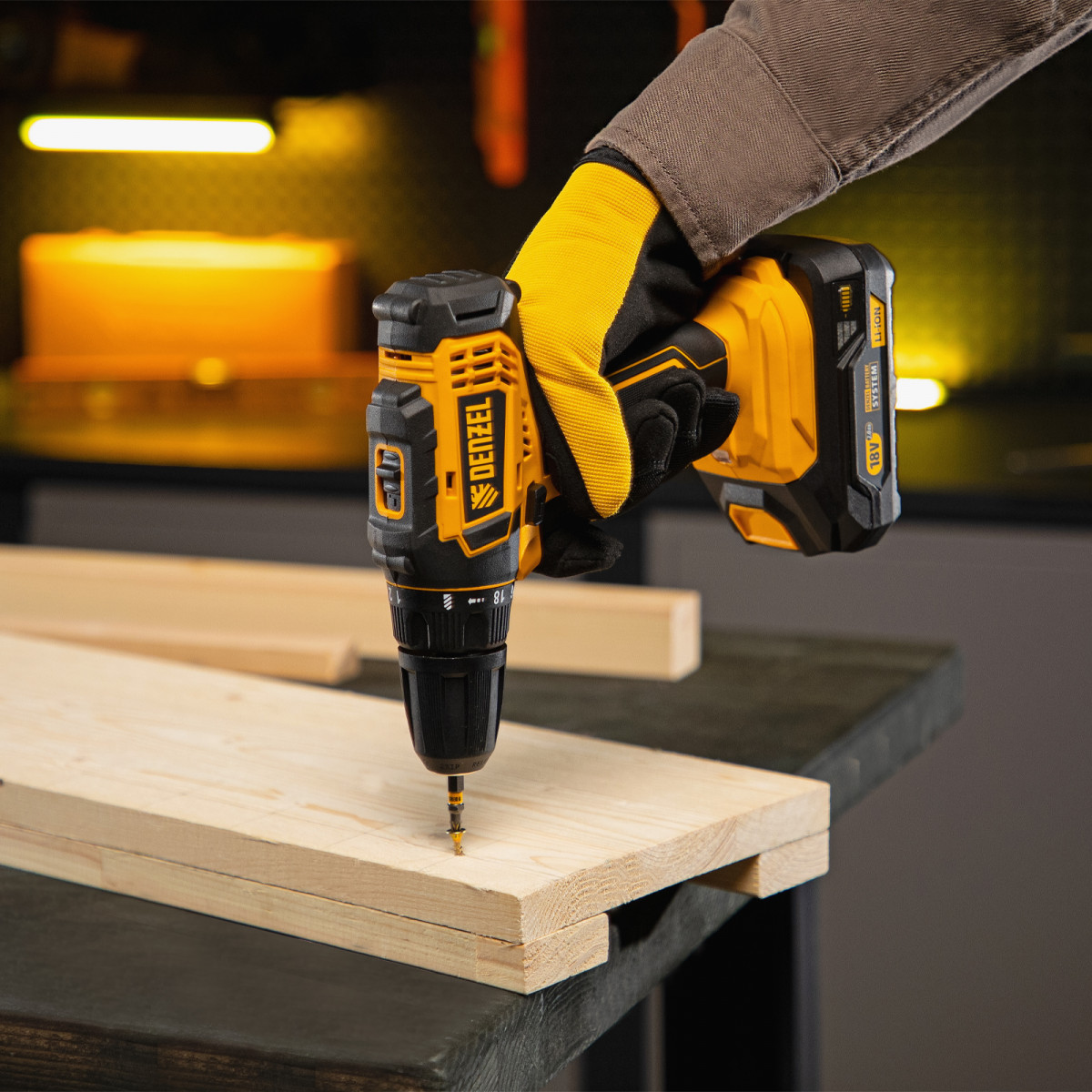• Универсальность — дрель-шуруповерт совместима с любым Li-Ion аккумулятором единой платформы Denzel Battery System 18V.