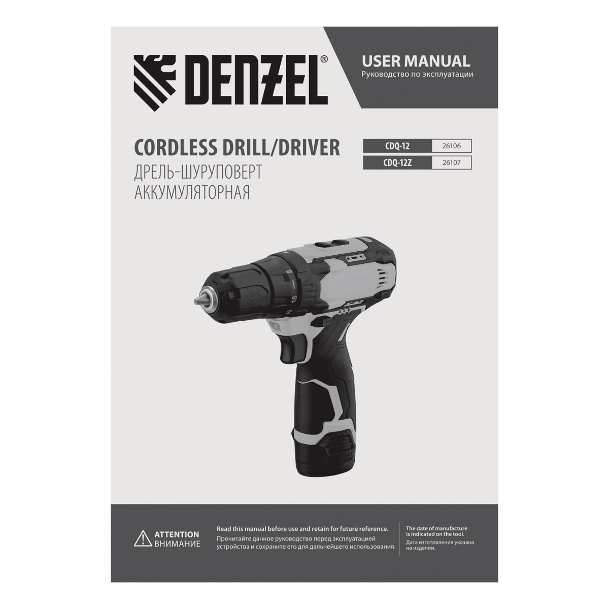 Дрель-шуруповерт аккумуляторная CDQ-12, Li-Ion, 12 В Denzel