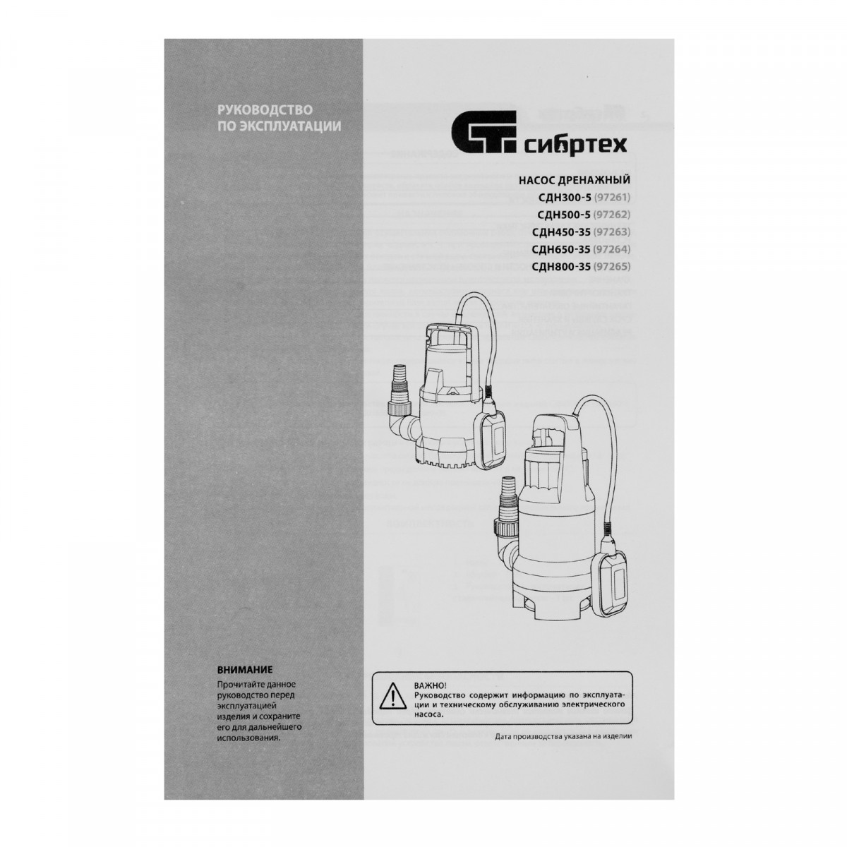 Дренажный насос для грязной воды СДН800-35, 800 Вт, напор 9 м, 13500 л/ч Сибртех