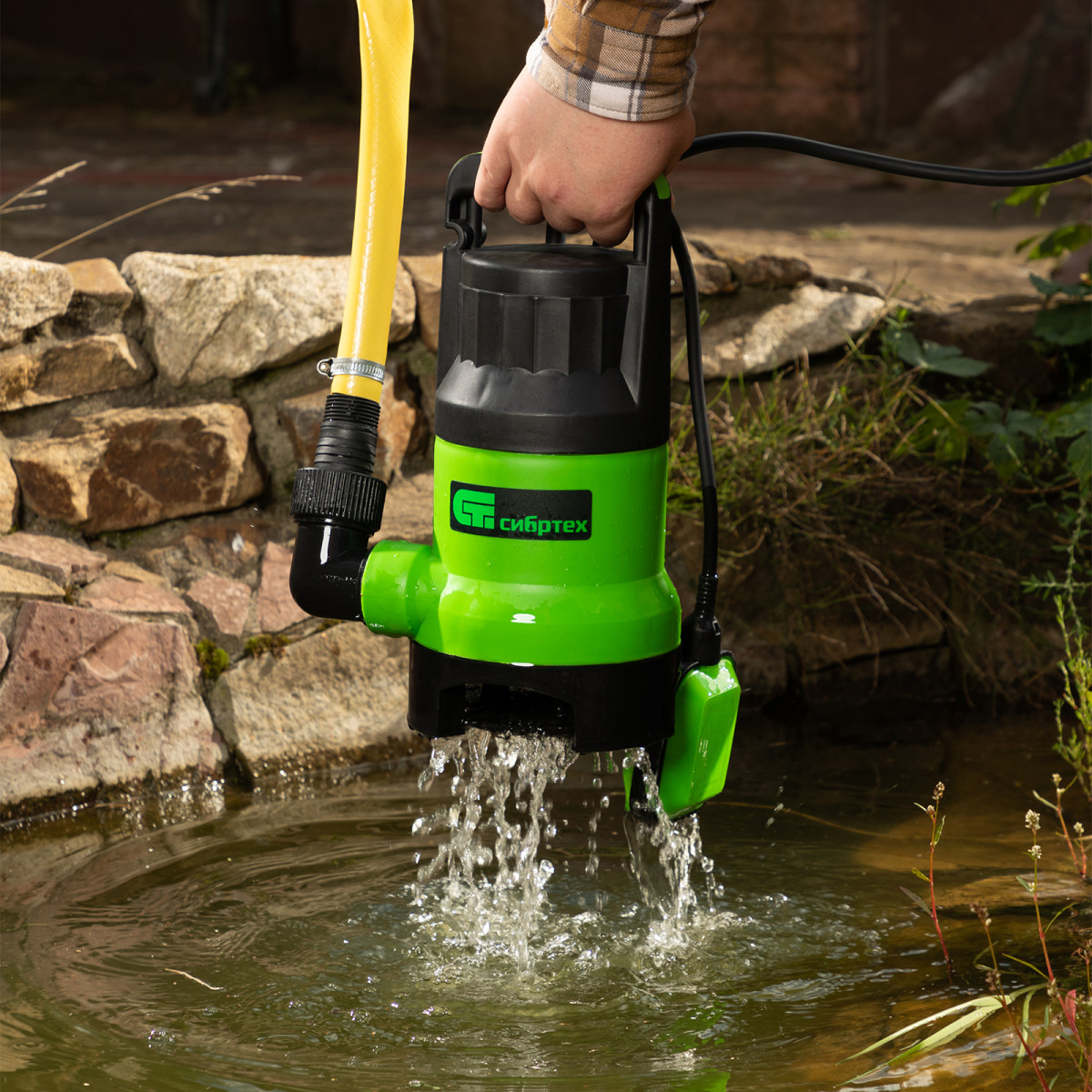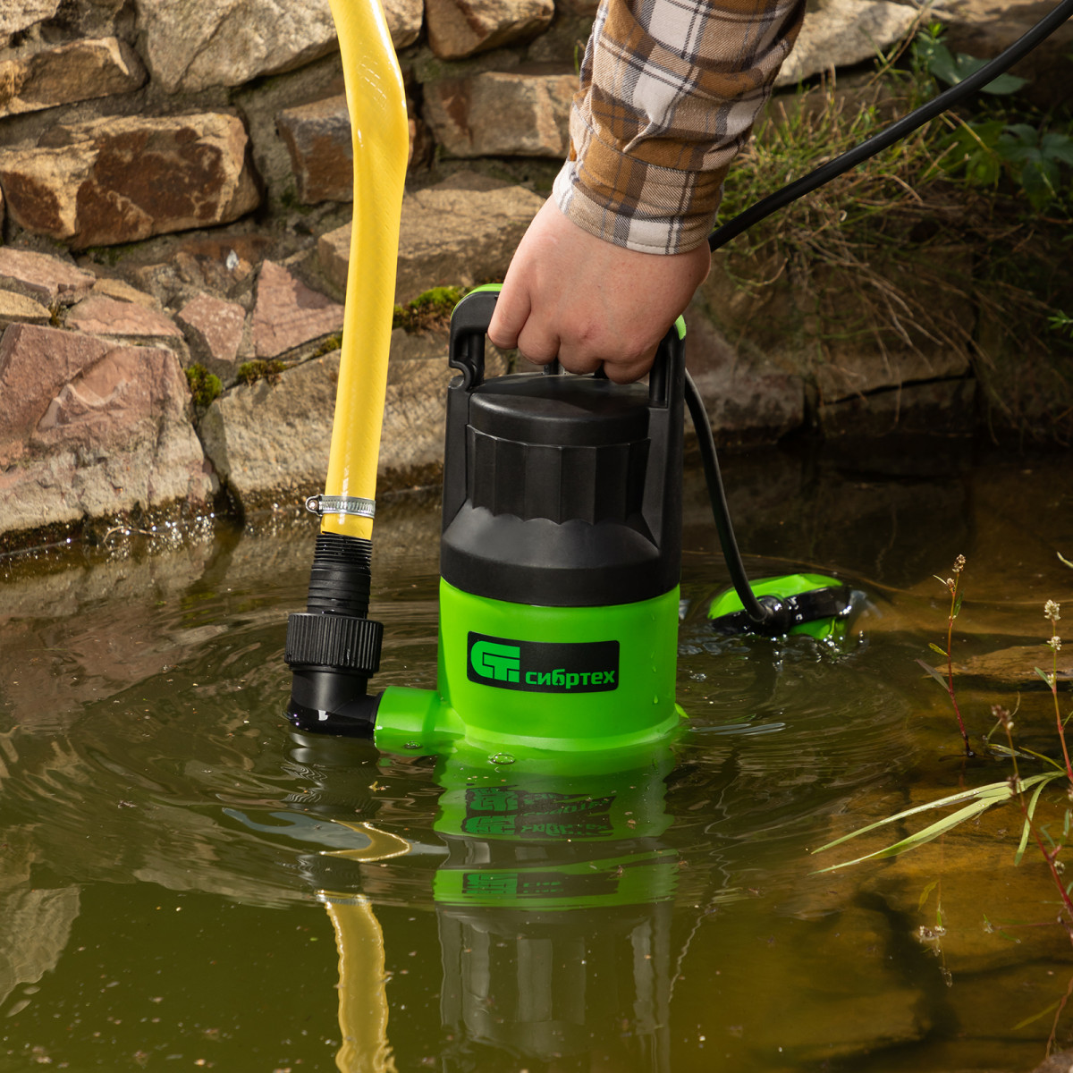 • Простая установка — насос с помощью троса погружается в резервуар или колодец на глубину до 7 м, специальные инструменты не требуются.