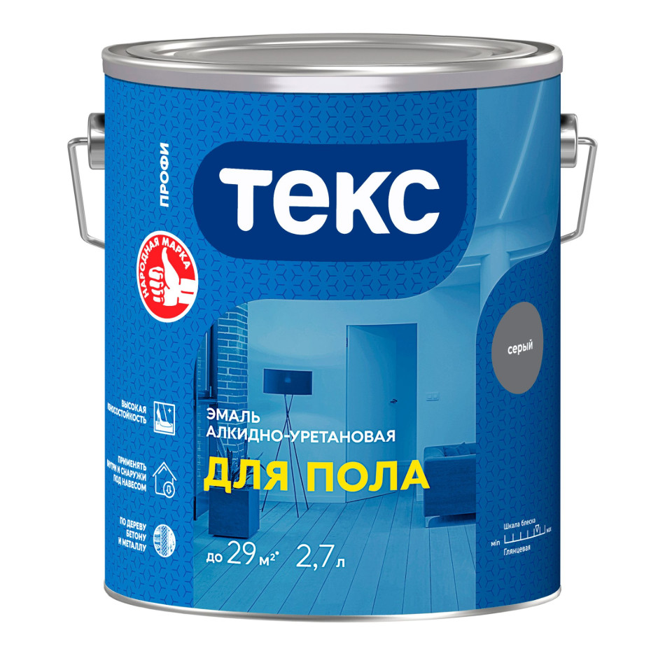 Эмаль ДЛЯ ПОЛА/для бетон. полов ПРОФИ серая гл 2,7л