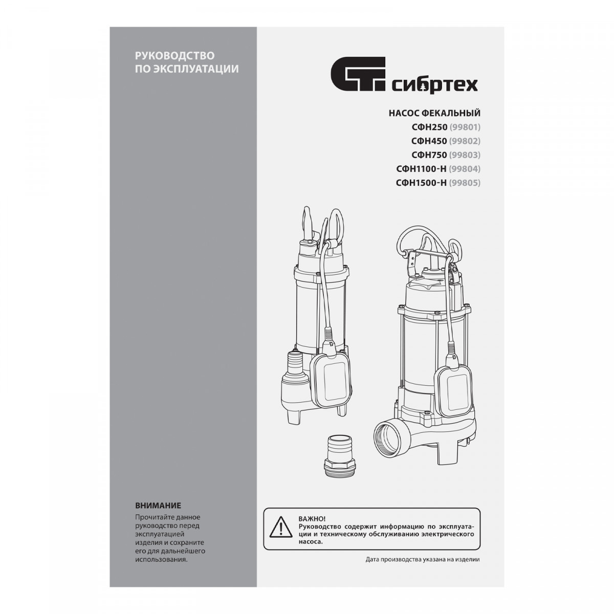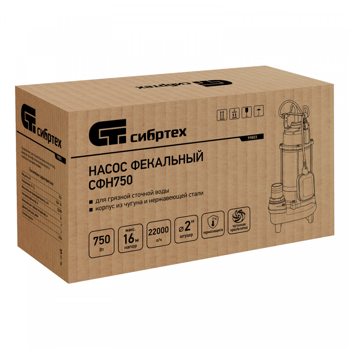 Фекальный насос СФН750, 750 Вт, напор 16 м, 22000 л/ч Сибртех