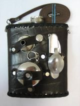 Фляжка из нержавеющей стали, обшитая тисненой натуральной кожей под крокодиловую, коричневого или черного цвета, со съемным ремешком