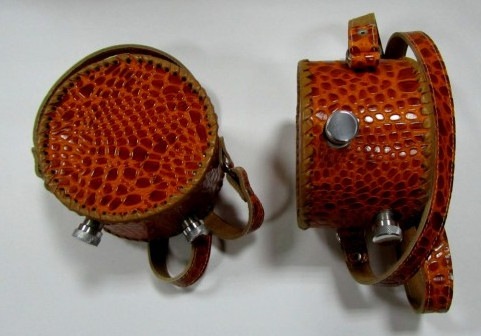 Фляга 1,0 л близнец, круглая - в кожанном чехле.