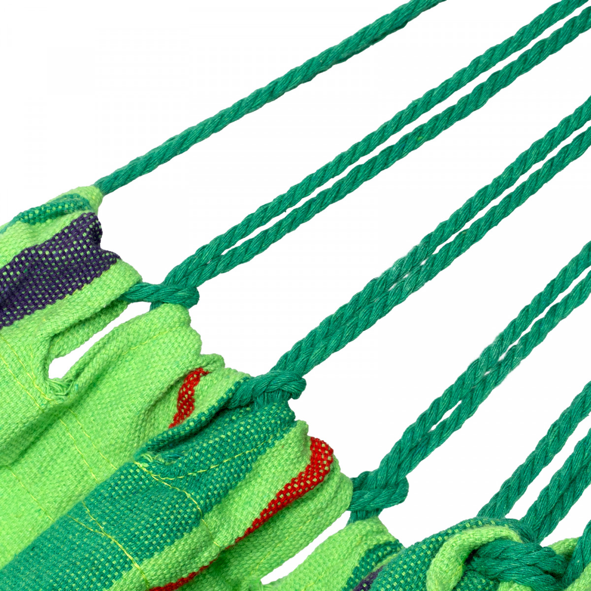 - Экологичность — гамак из 100% хлопка безвреден для здоровья и позволяет телу дышать.