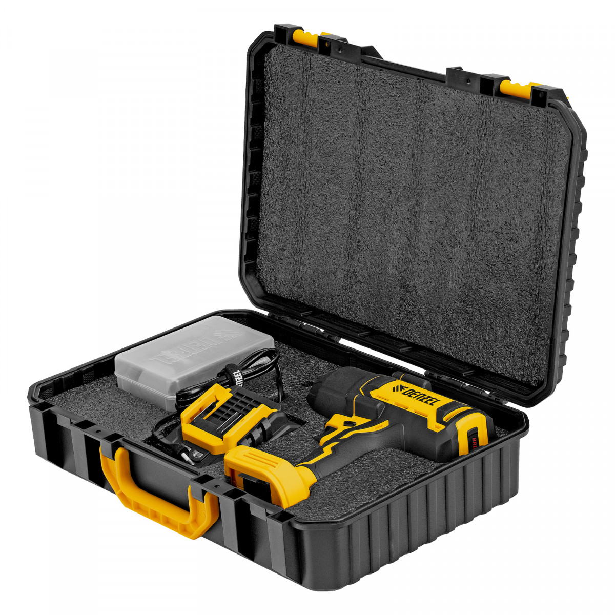 - Удобное хранение и транспортировка — гайковерт поставляется в прочном кейсе.