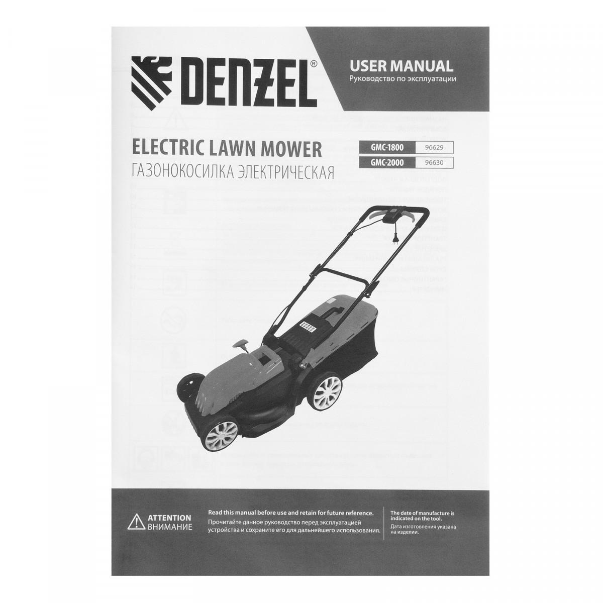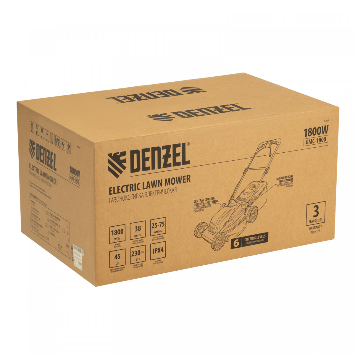 Газонокосилка электрическая GMC-1800, шир. 38см, 1800 Вт, 6 уров., травосб. 35 л Denzel