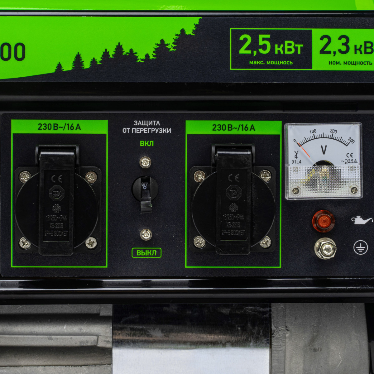 • Контроль рабочих параметров — встроенный вольтметр позволяет отслеживать напряжение в сети, а топливный индикатор — уровень бензина в баке.