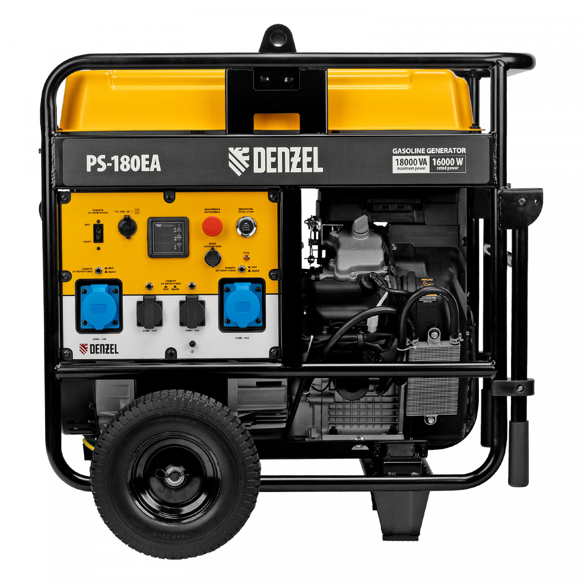 Генератор бензиновый PS-180EA, 18 кВт,230 В, 65л, разъём ATS,эл.старт Denzel