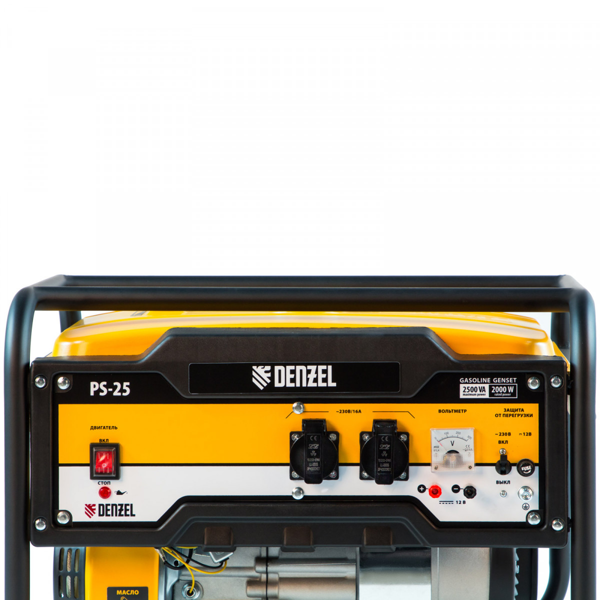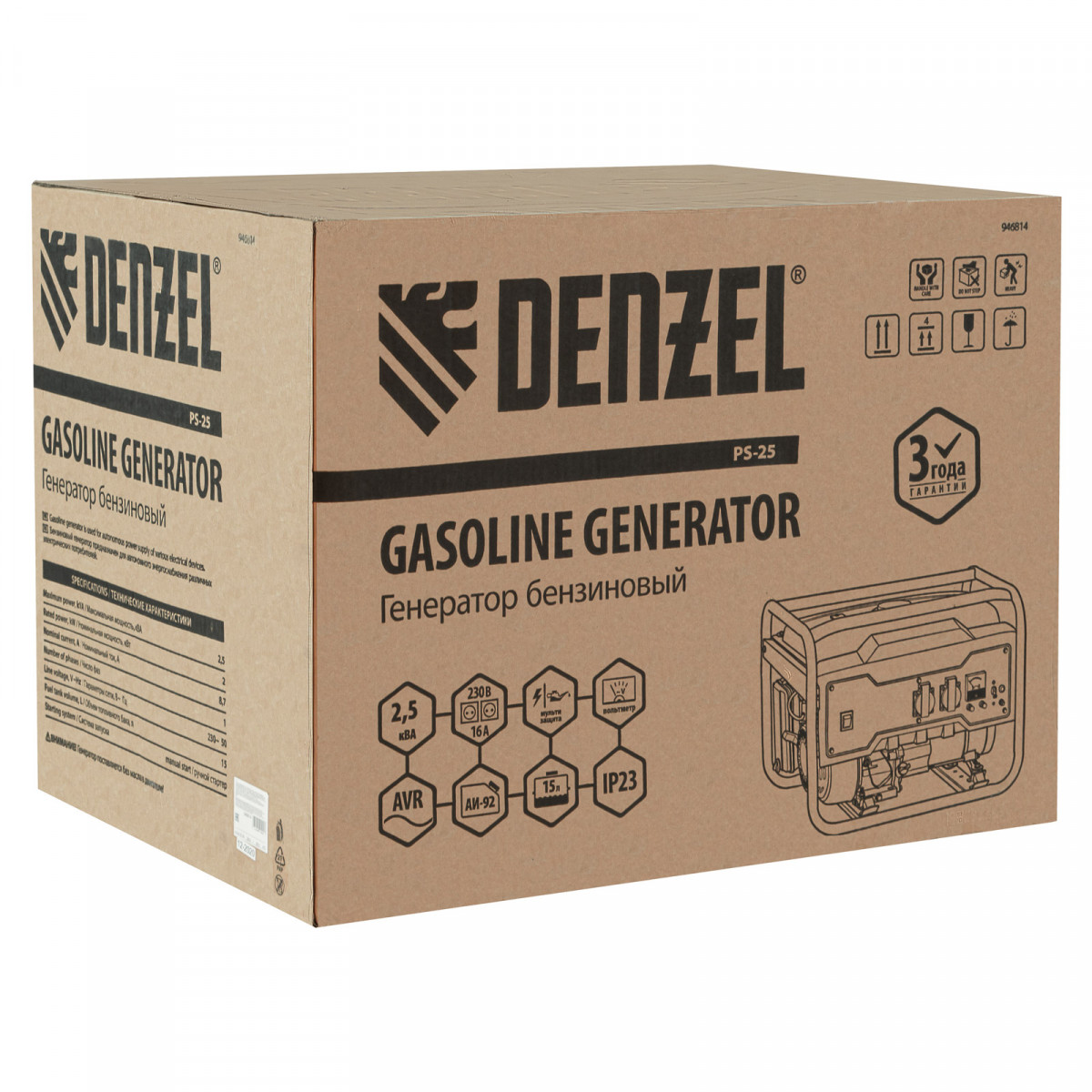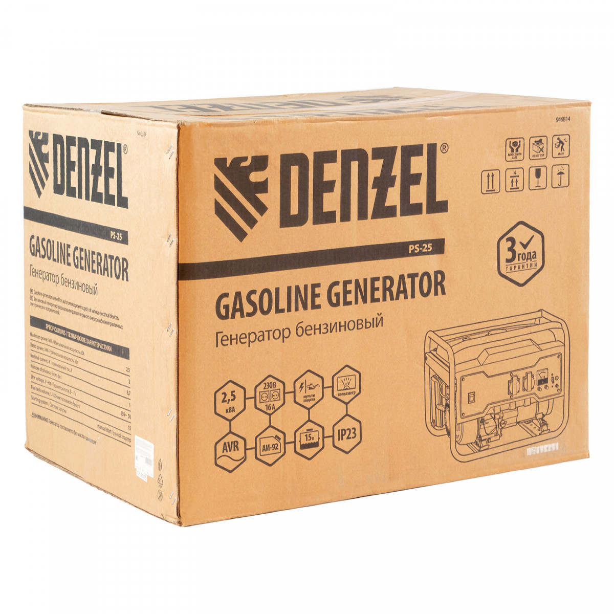 Генератор бензиновый PS 25, 2.5 кВт, 230 В, 15 л, ручной стартер Denzel