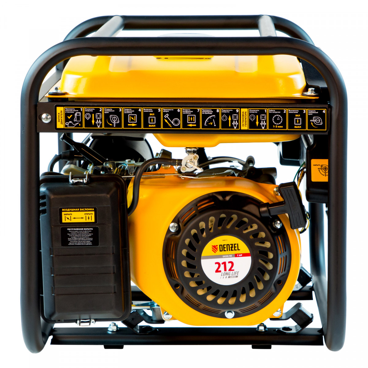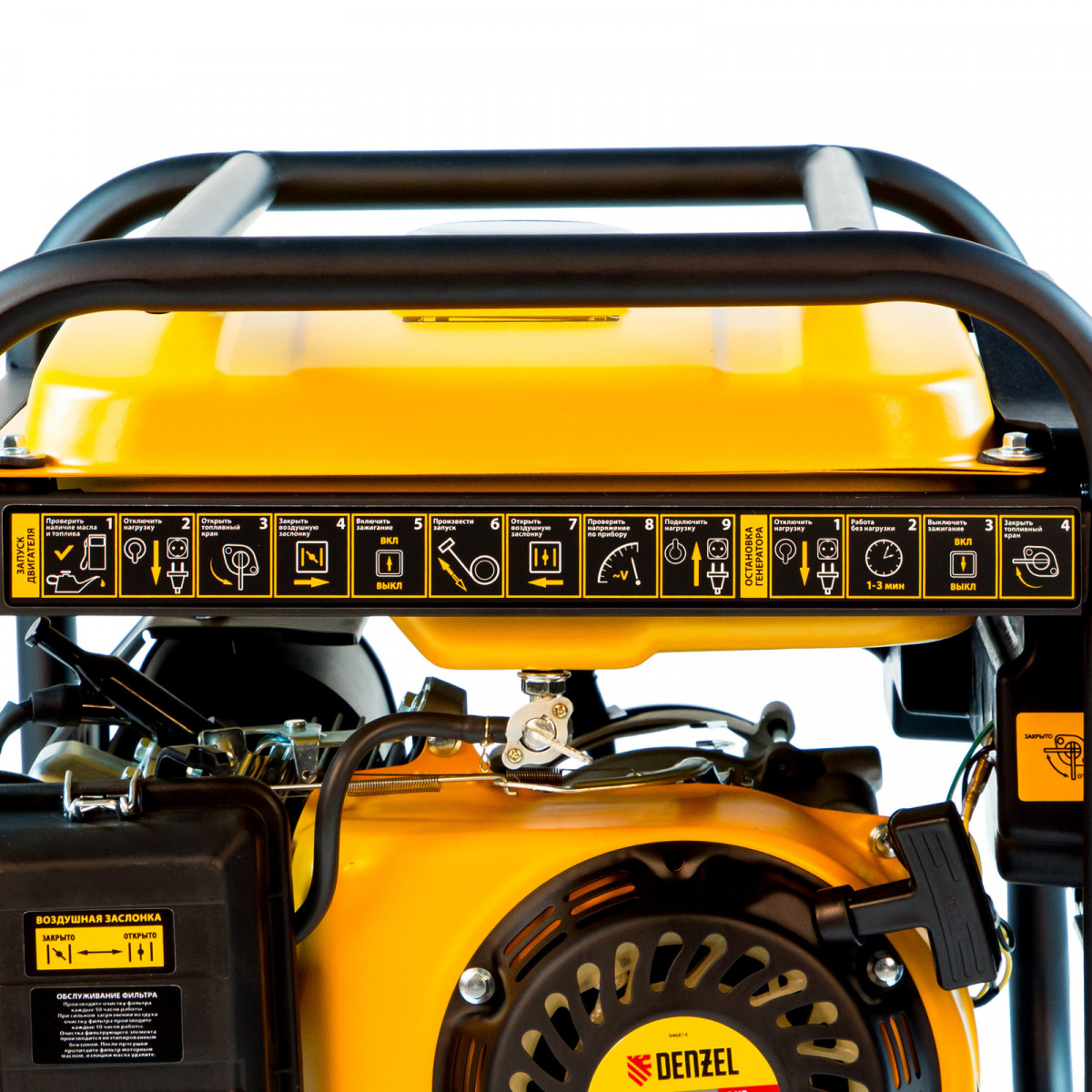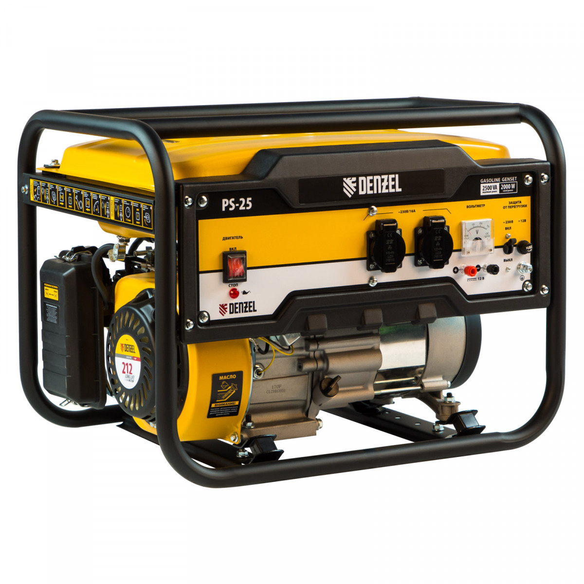 Генератор бензиновый PS 25, 2.5 кВт, 230 В, 15 л, ручной стартер Denzel