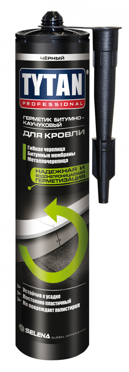 Герметик Tytan для кровли — черный однокомпонентный битумно-каучуковый герметик, при герметизации, ремонте, обновлении, защите швов, трещин и отверстий на всех видах кровельных поверхностей (битум, смола для крыш, черепица, сталь, алюминий, древесина, камень, бетон, кирпич). Рекомендуется для уплотнения водостока, мансардных окон, швов между кровельными материалами, герметизации протечек.Титан для кровли обладает превосходной адгезией к сухим и мокрым кровельным материалам, высокой атмосферостойкостью, стойкостью к воздействию высоких и низких температур и УФ лучей. Не стекает с вертикальных поверхностей.