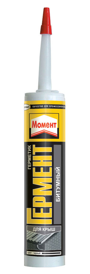 ГЕРМЕНТ битумный Момент используется во время профессионального ремонта. Черный пластичный герметик на основе модифицированного битума применяют при ремонте крыш, водосточных труб, дренажных работ, а также можно заделывать проточки через швы между металлическими листами кровли.