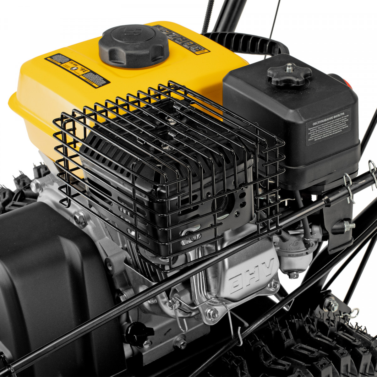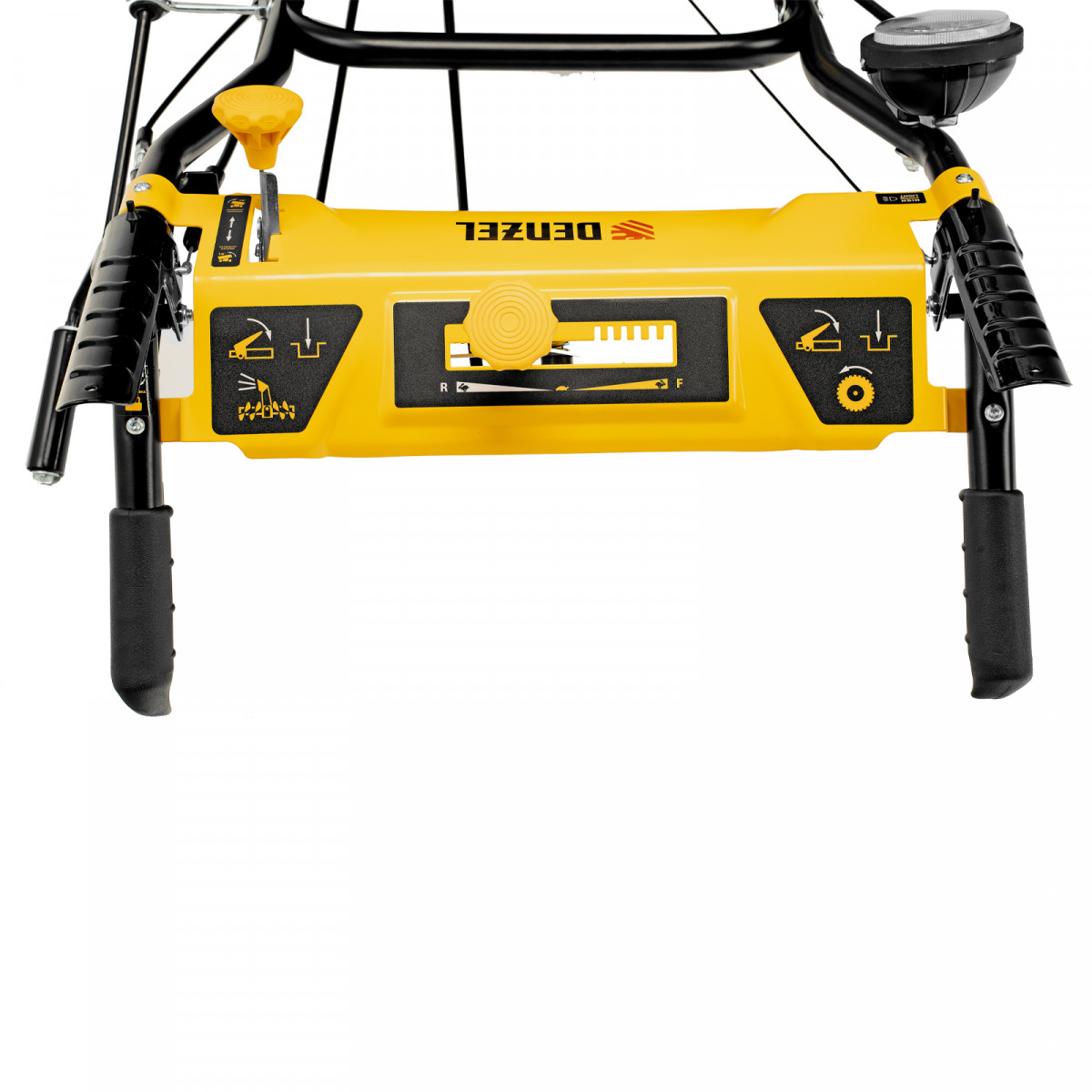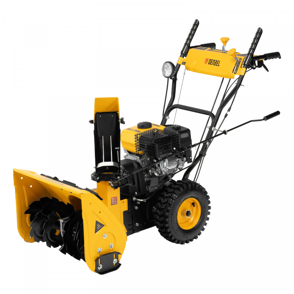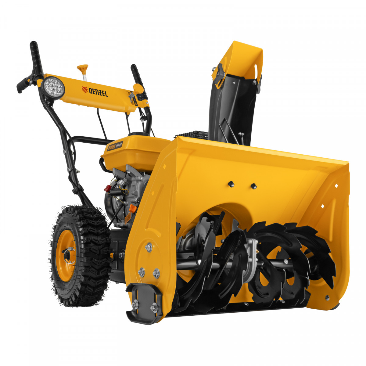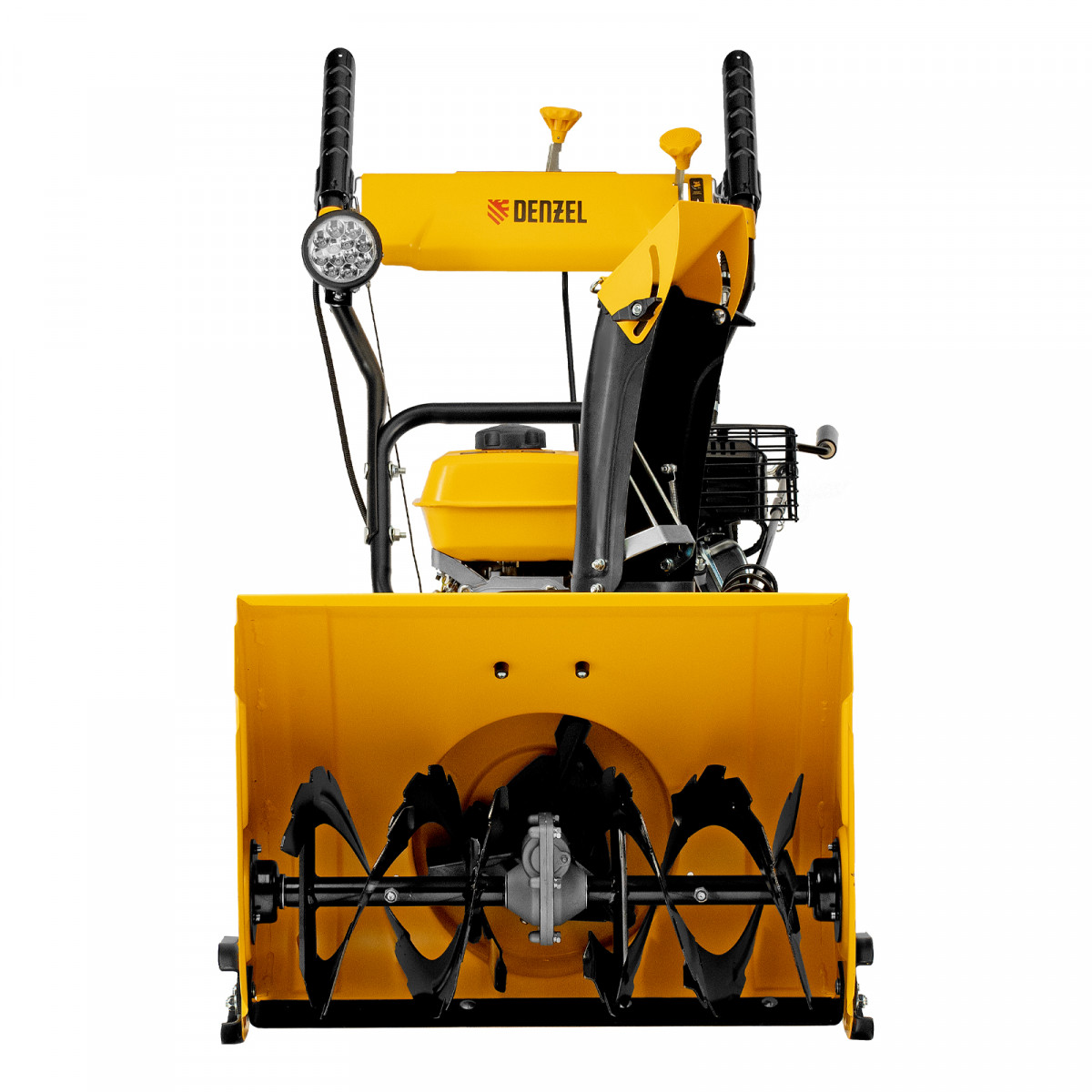 - Возможность увеличения ширины захвата 700 мм — на кожух шнека можно установить подрезатели Denzel 97102 (не входят в комплект поставки).