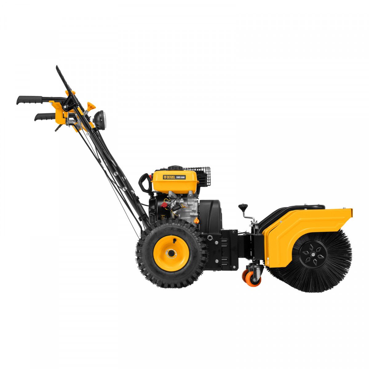 Гибридная снегоуборочная машина Denzel SWB-800 97662 с двигателем объемом 212 см3, ручным стартером и 2 насадками, предназначена для очистки территории от снега, а также может использоваться для уборки листвы, грязи, пыли и мусора. Благодаря приводу на колеса машину не нужно толкать. Ширина обработки щеткой составляет 800 мм, ширина снегоуборочной насадки — 560 мм при высоте захвата 430 мм. Машина позволяет быстро расчистить дорожки, тротуары, территорию парковки и т.д.