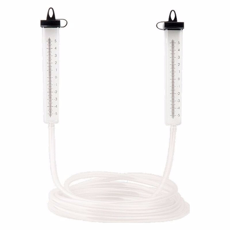 Достаточно широкое применение получил гидроуровень, также известный как строительный водяной уровень. По своему устройству он представляет собой обычный шланг, длина которого может составлять от 5 до 25 метров, а на его концах располагаются две колбы, на которые нанесена шкала. Эти колбы оборудованы специальными крышками, через которые в шланг наливается вода. Водяной строительный уровень может быть использован исключительно для того, чтобы определить степень точности поверхностей. Среди преимуществ его использования следует выделить достаточно простую и понятную схему эксплуатации, длину и низкую стоимость.