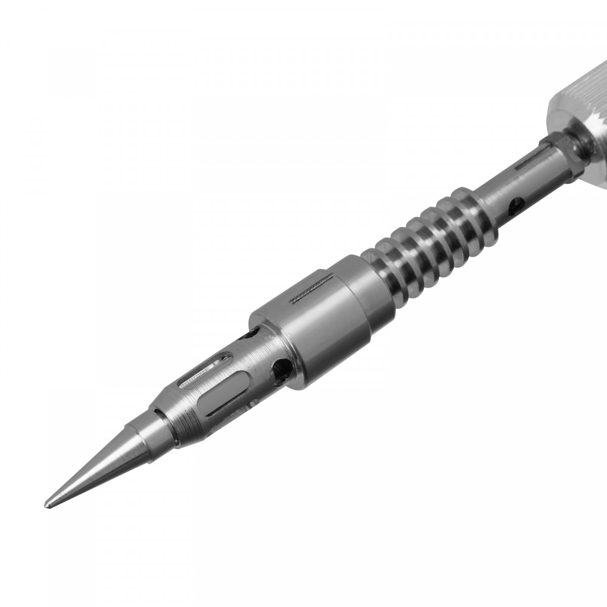 • Возможность работы с деталями разного размера — в комплект поставки входят две насадки для пайки (плоская и в виде жала).