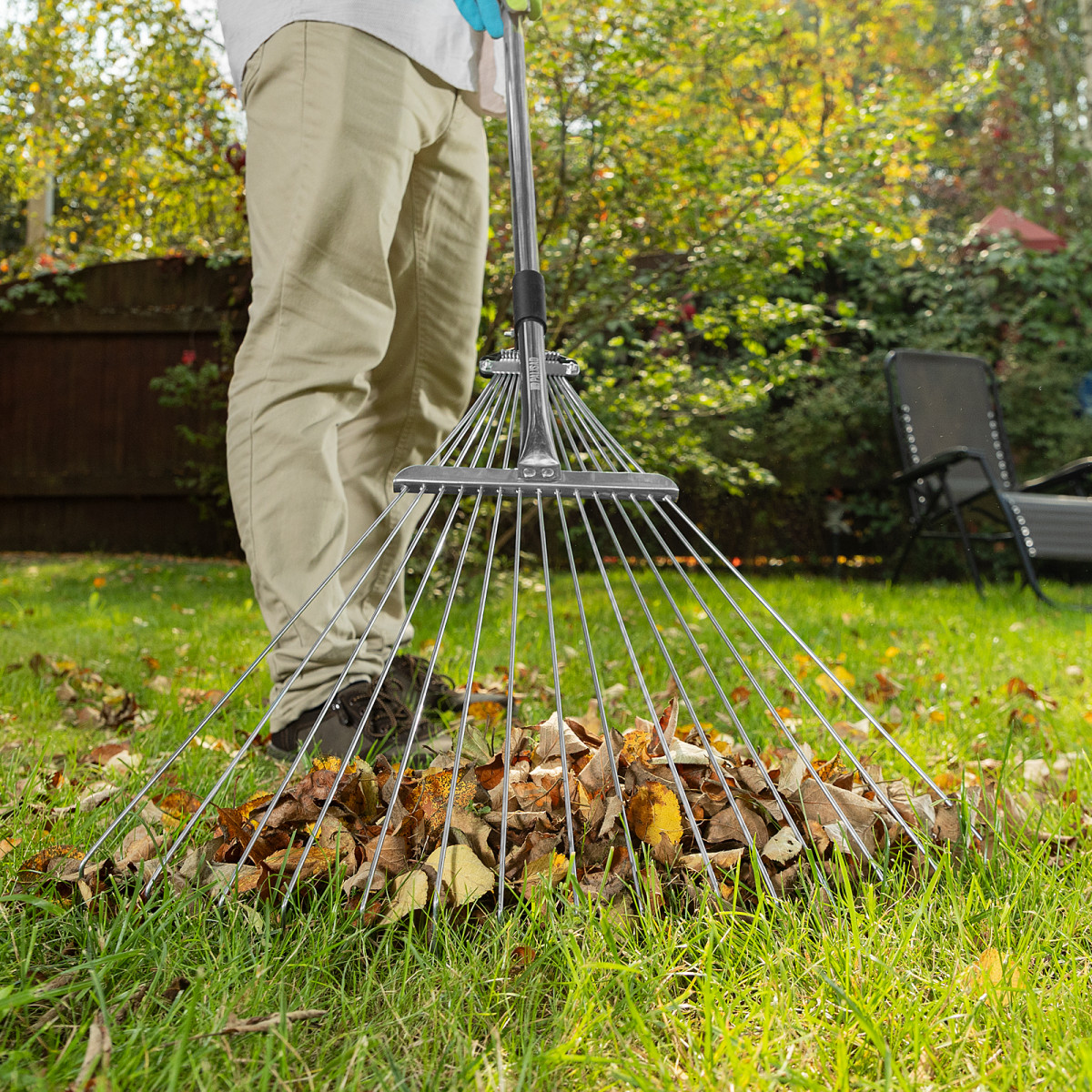 Грабли веерные стальные, 190 - 520 х 1200 - 1500 мм, 15 зубьев, раздвижные, стальной черенок, Palisad