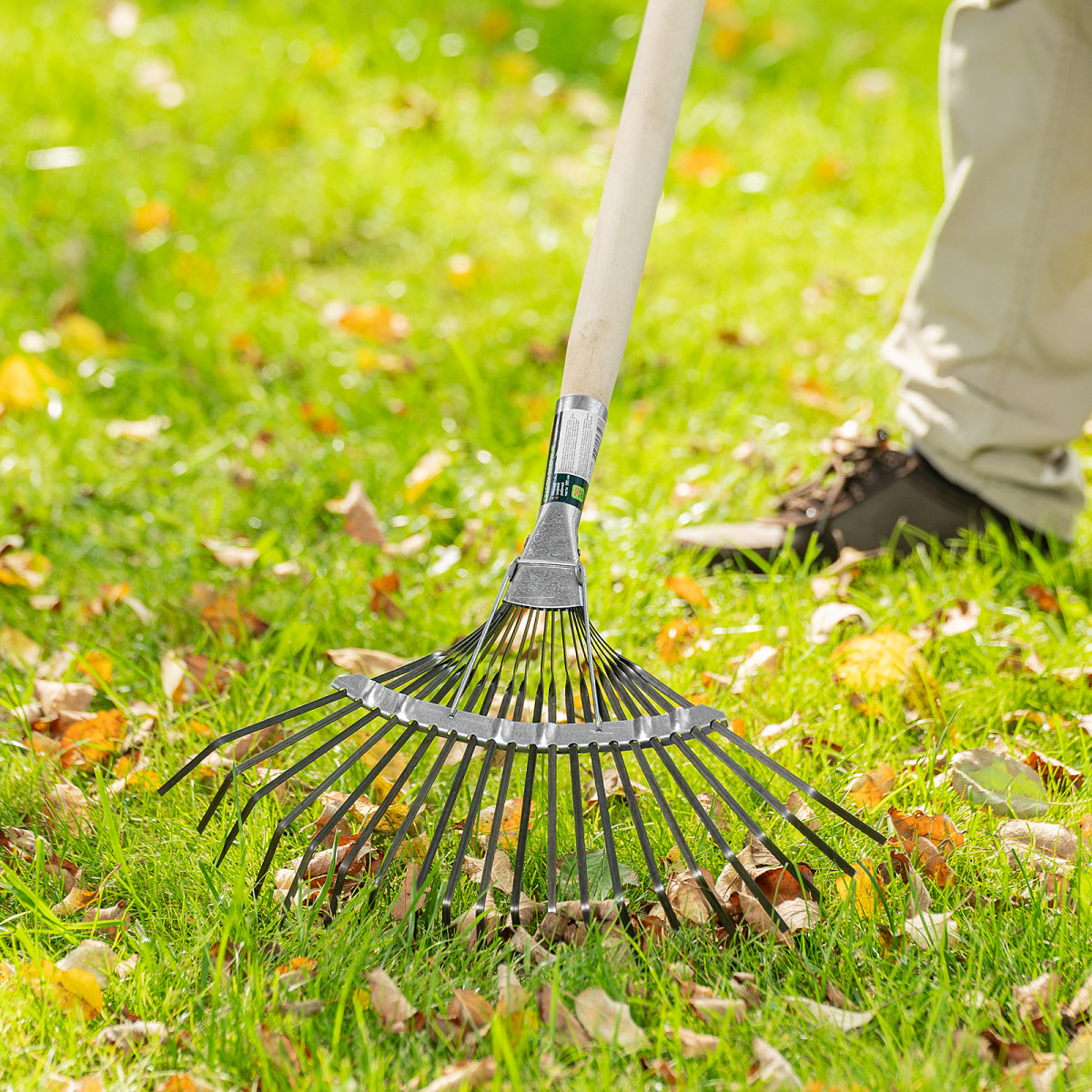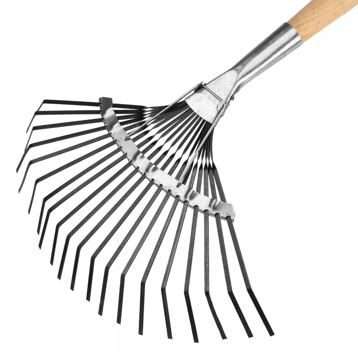 Грабли веерные стальные, 385 х 1450 мм, 20 плоских зубьев, деревянный черенок, Сибртех