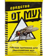 Назначение: для уничтожения мух в помещениях.Характеристика: инсектицидная приманка в форме гранул.Содержит специальные компоненты, а также мушиный феромон, гарантирующий подлёт насекомых. Их гибель наступает через несколько минут после поедания средства. Оно выпускается в гранулах, которые удобно размещать в нужных местах. Пищевые приманки действуют эффективнее, так как часто мухи избегают посадки на поверхности, обработанные контактными средствами.