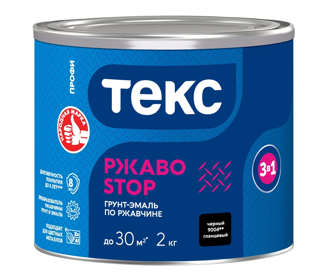 Грунт-эмаль 3в1 РЖАВОSTOP ПРОФИ черная глянцевая 2кг ТЕКС