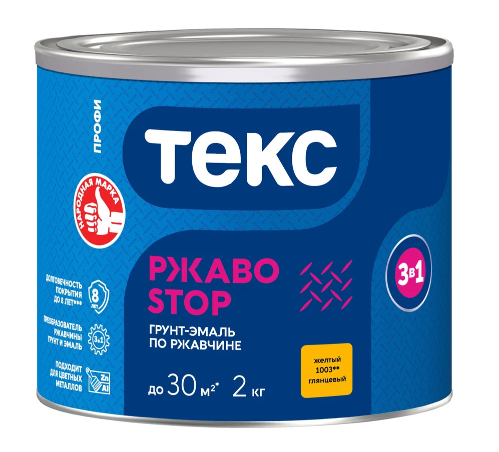 Грунт-эмаль 3в1 РЖАВОSTOP ПРОФИ желтая глянцевая 2кг ТЕКС