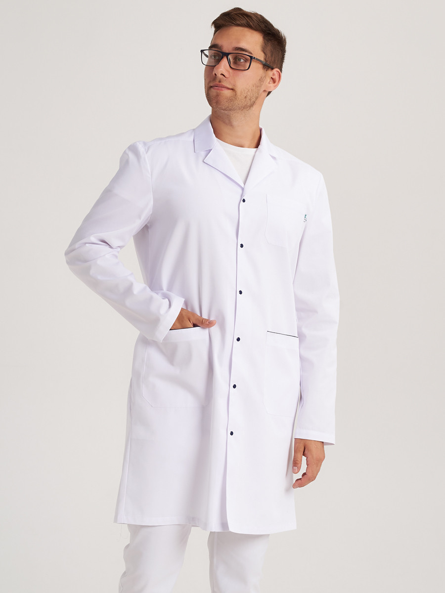 Качественный мужской медицинский халат на кнопках из нержавеющей стали.