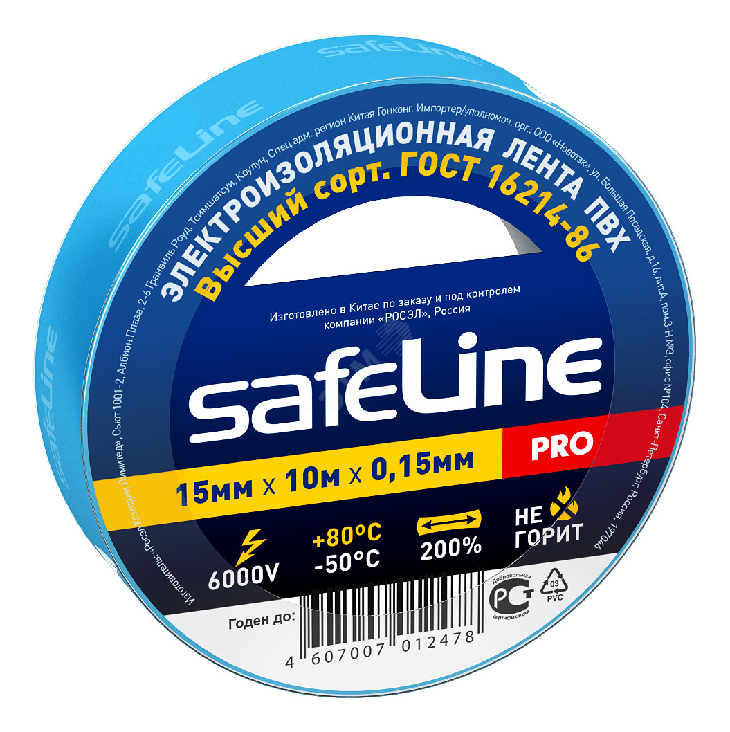 Изолента 15 мм/10 м синяя SafeLine