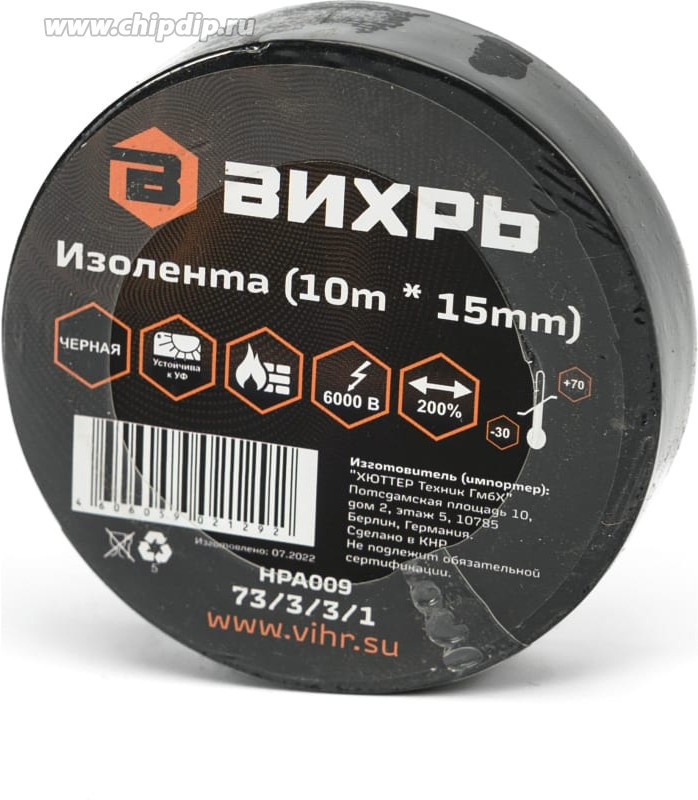 Изолента 15мм*10м чёрная Вихрь