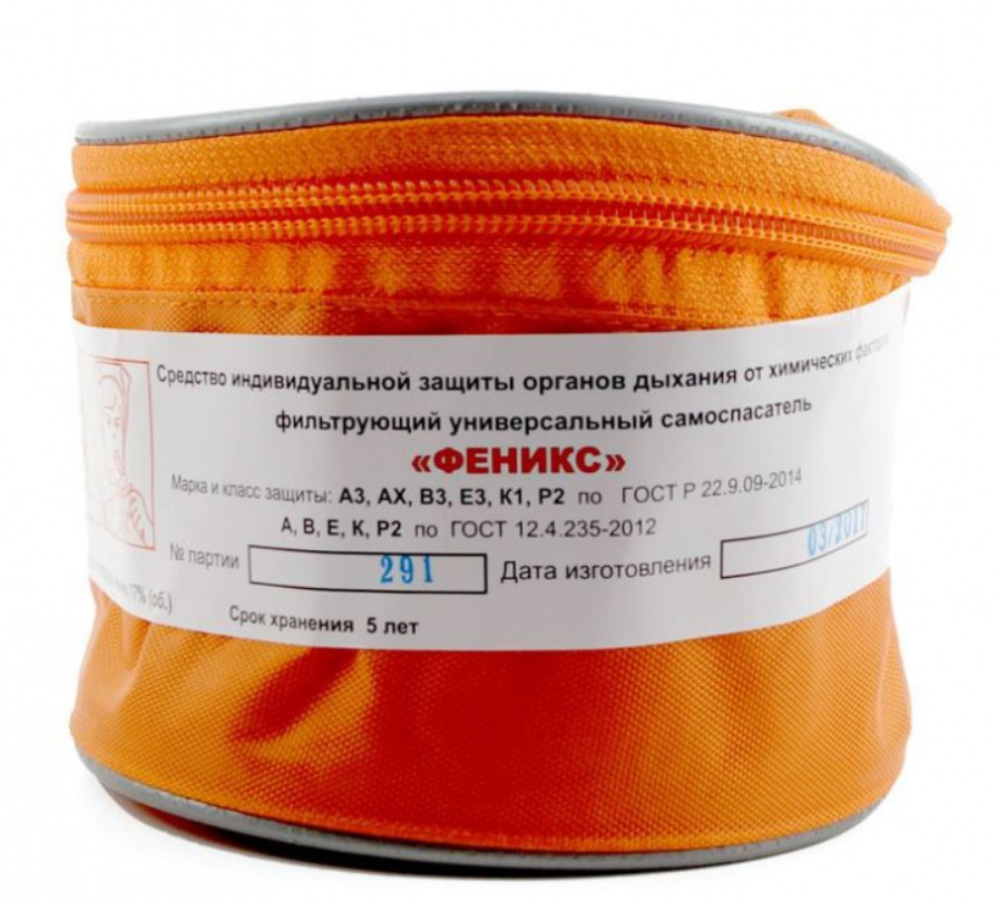 Противогаз - самоспасатель «Феникс-2» предназначен для защиты органов дыхания, глаз и кожи лица взрослого человека и детей старше 7 лет от паров, газов и аэрозолей опасных химических веществ (включая продукты горения) при эвакуации населения из зон заражения при крупных авариях на опасных химических производствах, либо при других чрезвычайных ситуациях, требующих затрат времени на эвакуацию до 60 минут.
