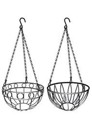 Подвесное кашпо для размещения декоративных растений в горшке как снаружи, так и внутри помещения. Подвешивается на трех цепочках, объединенных удобным крюком. Представляет собой круглую корзину внутренним диаметром 254 или 260 мм и глубиной 150 мм. Высота с цепью и крюком 535 мм. Материал: сталь, окрашенная для защиты от коррозии.
