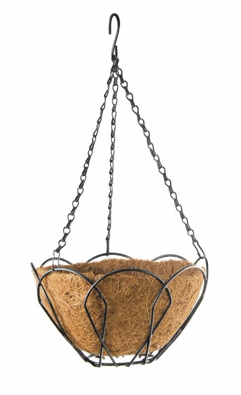 Подвесное кашпо для размещения декоративных растений в нем как снаружи, так и внутри помещения. Подвешивается на трех цепочках, объединенных удобным крюком. Наличие кокосового наполнителя не требует использования цветочного горшка. Высота с цепью и крюком 480 мм. Материал: сталь, окрашенная для защиты от коррозии.