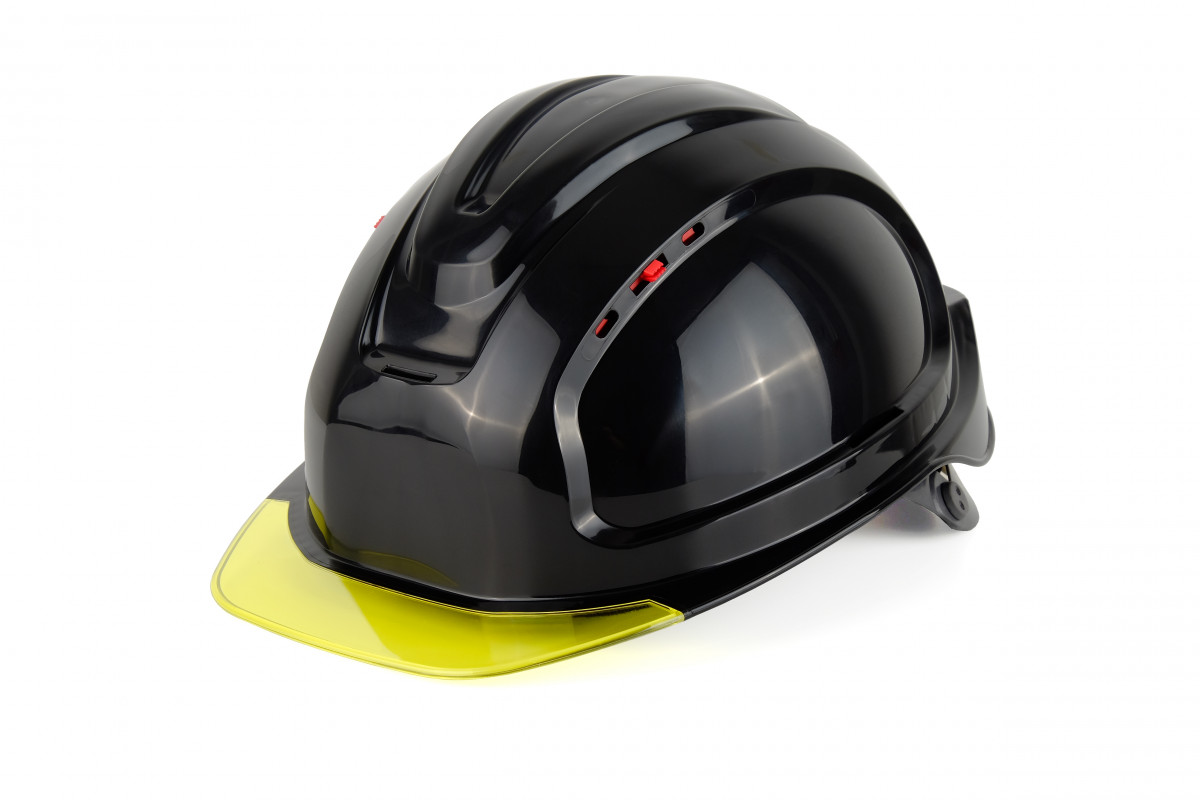Каска защитная Абсолют Престиж черная бесцветный желтый козырёк