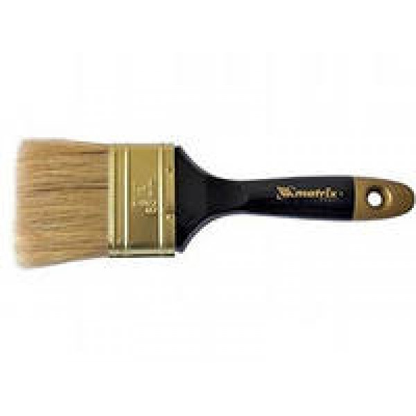 Ворс кисти из натуральной щетины двойной выварки. Щетина расщеплена на концах. Толщина кисти от 13 до 24 мм. Щетина кисти надежно закреплена металлическим бандажом с антикоррозийным покрытием. Деревянная окрашенная ручка с отверстием для подвешивания имеет эргономичную форму, которая делает работу комфортной. Кисть предназначена для работ с масляными красками и лаками, устойчива к агрессивным составам. Разработана специально для профессиональных работ.