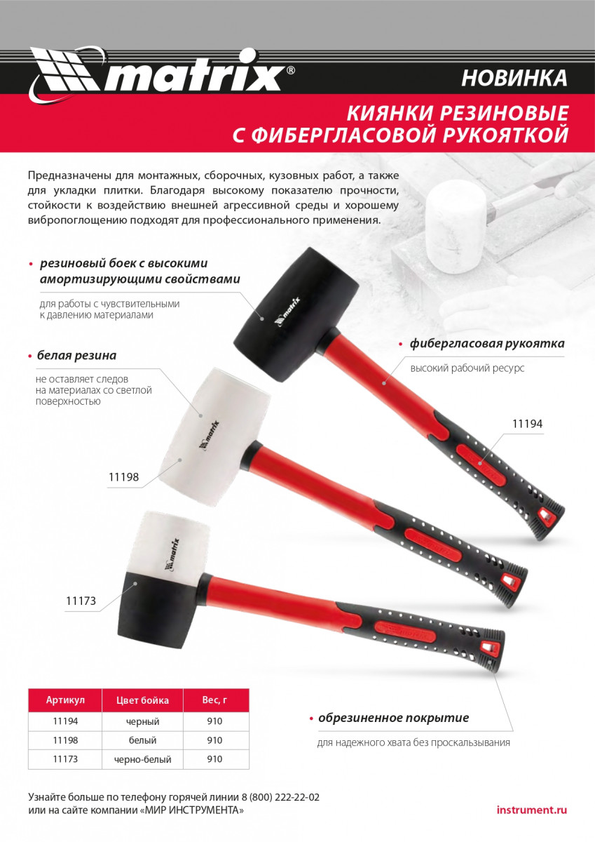 • Боек изготовлен из белой резины, которая не оставляет следов, поэтому инструмент подходит для работы со светлыми материалами..