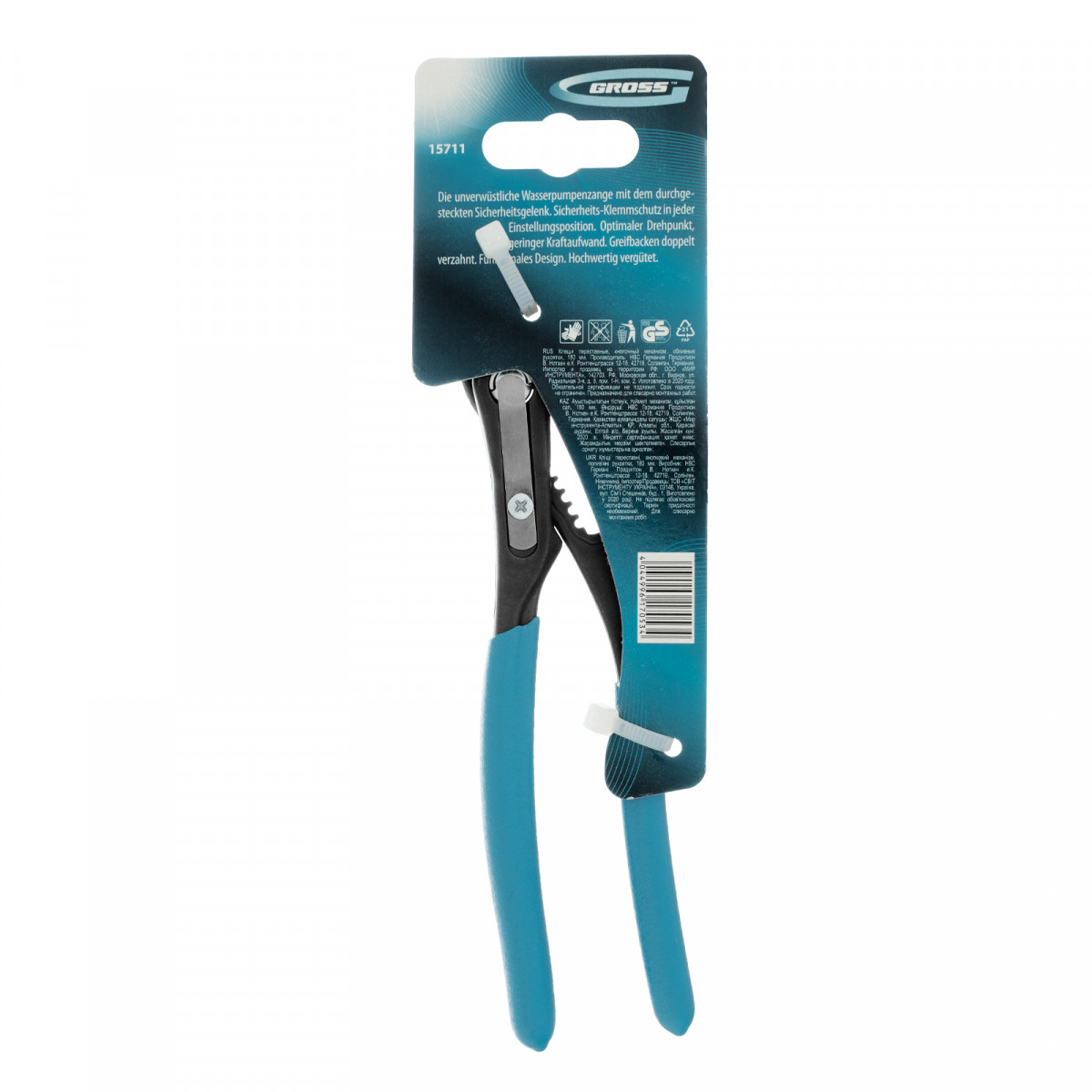 Переставные клещи Gross 15711 длиной 180 мм, с кнопочным механизмом и обливными рукоятками, — профессиональный инструмент для работ с сантехникой, фитингами, трубами и т.д. Рабочие губки с насечками обеспечивают надежный захват изделий диаметром до 35 мм. Клещи удобны для работы в труднодоступных местах.