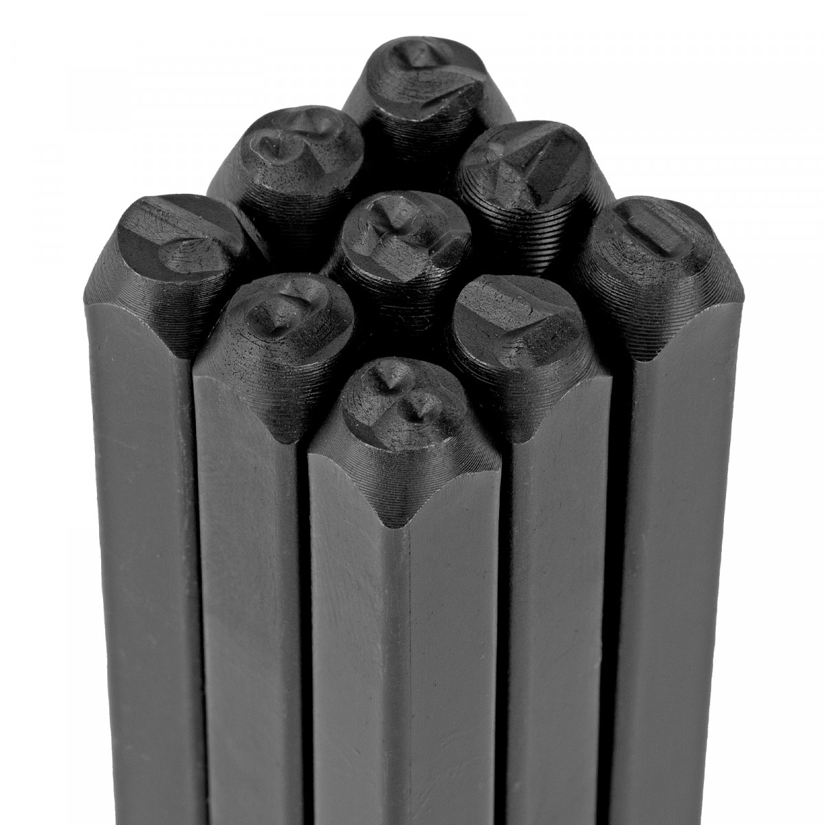 Штамповочные клейма Сибртех 18844 с размером шрифта 5 мм используются для нанесения цифровой маркировки на изделия из металла и других материалов методом ударного воздействия. Изделия обработаны на станках с числовым программным управлением, поэтому отличаются точностью и высокой четкостью получаемых цифр.