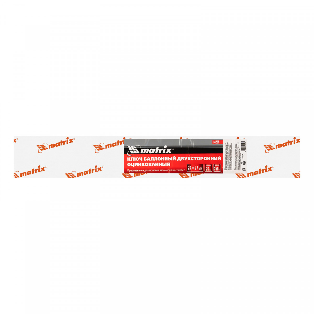 Двухсторонний баллонный ключ Matrix 14295, 24 х 27 мм, толщиной 26 мм и длиной 350 мм, используется для шиномонтажных работ на грузовом транспорте и автобусах. Две несъемные торцевые шестигранные головки подходят под крепеж 24 и 27 мм. Инструмент применяется на станциях техобслуживания.