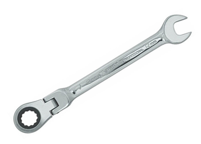 Шарнирный ключ MATRIX с трещоткой позволяет менять угол наклона до 180 градусов для работы в труднодоступных местах.